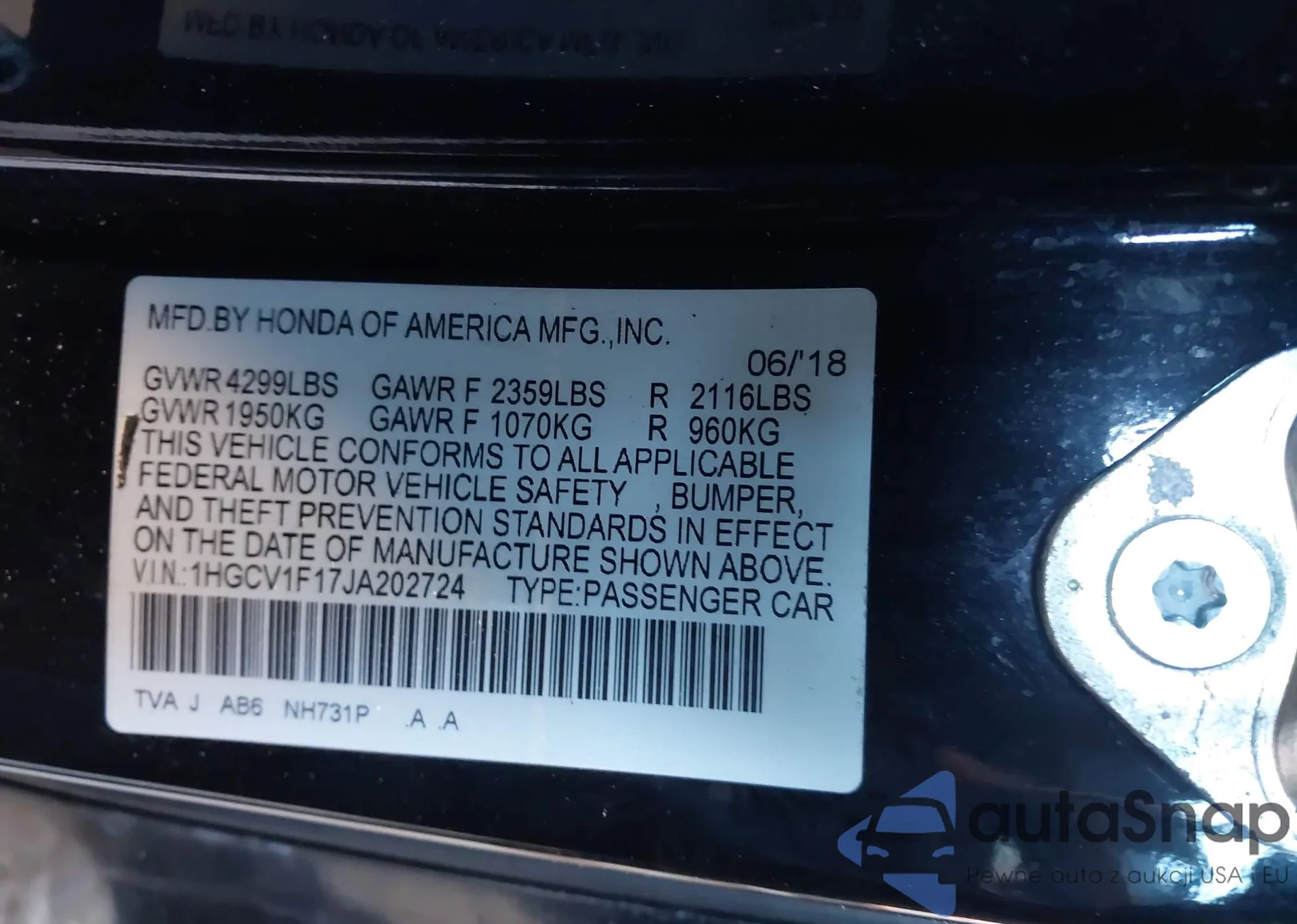 • VIN 1HGCV1F17JA202724