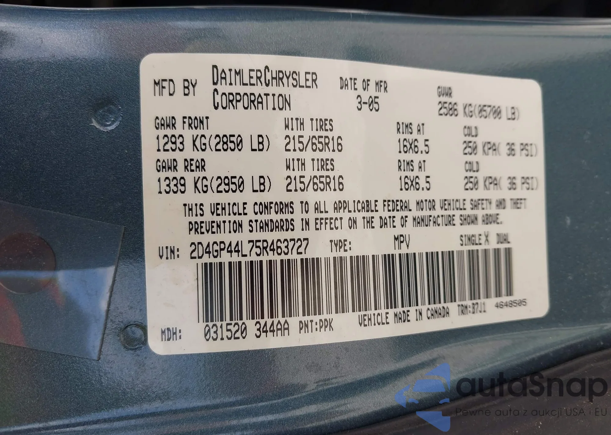 • VIN 2D4GP44L75R463727