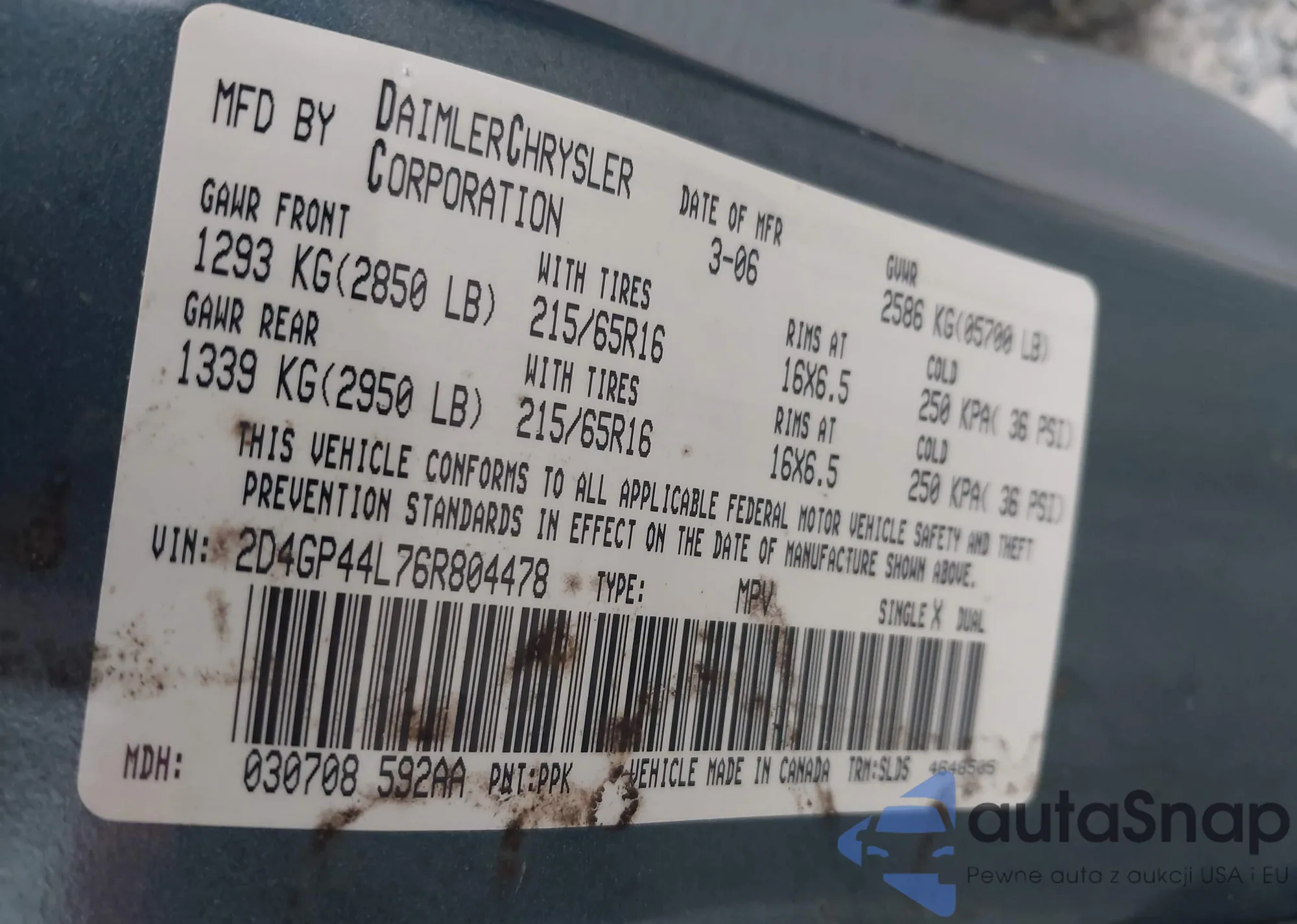 • VIN 2D4GP44L76R804478