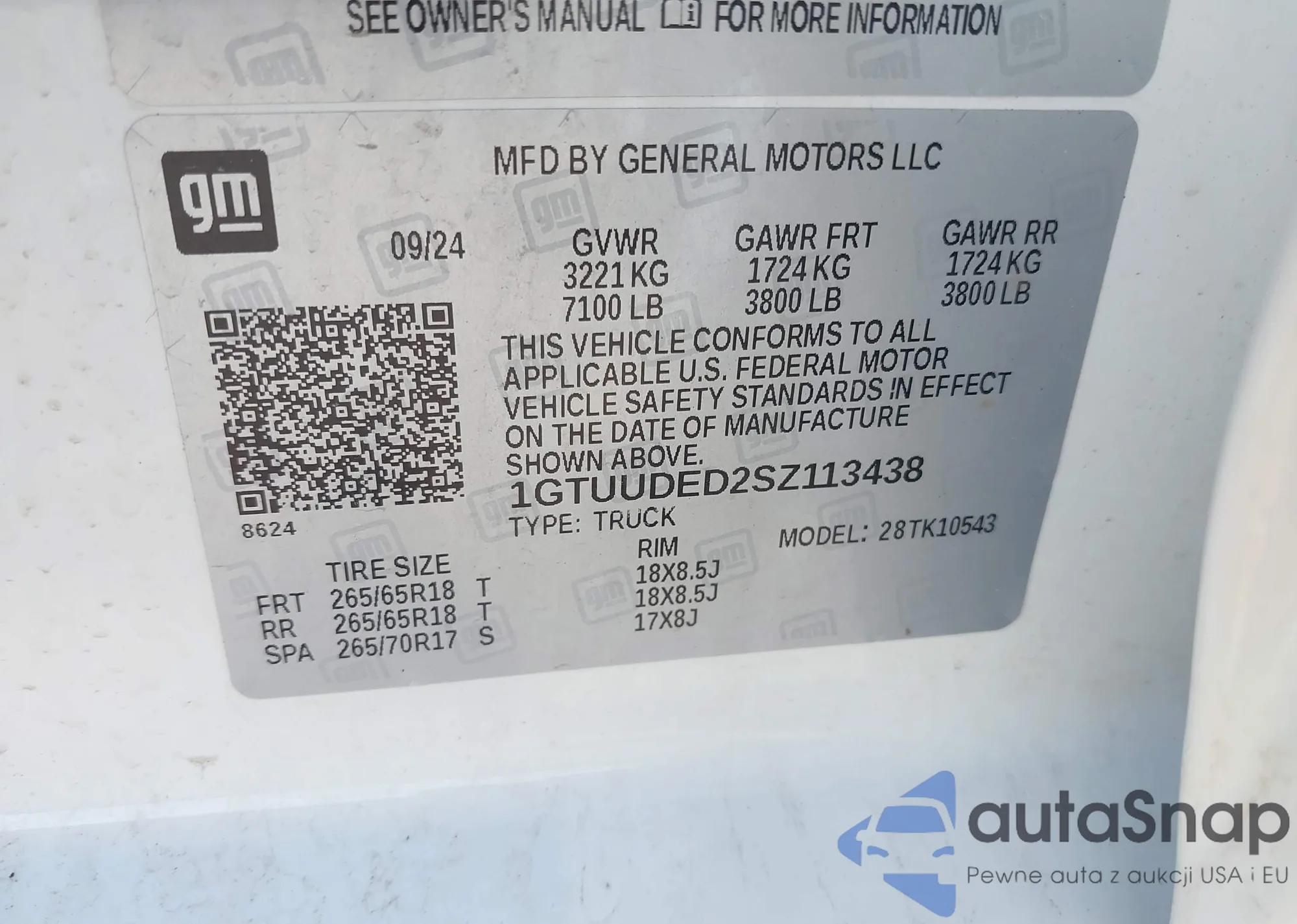 • VIN 1GTUUDED2SZ113438