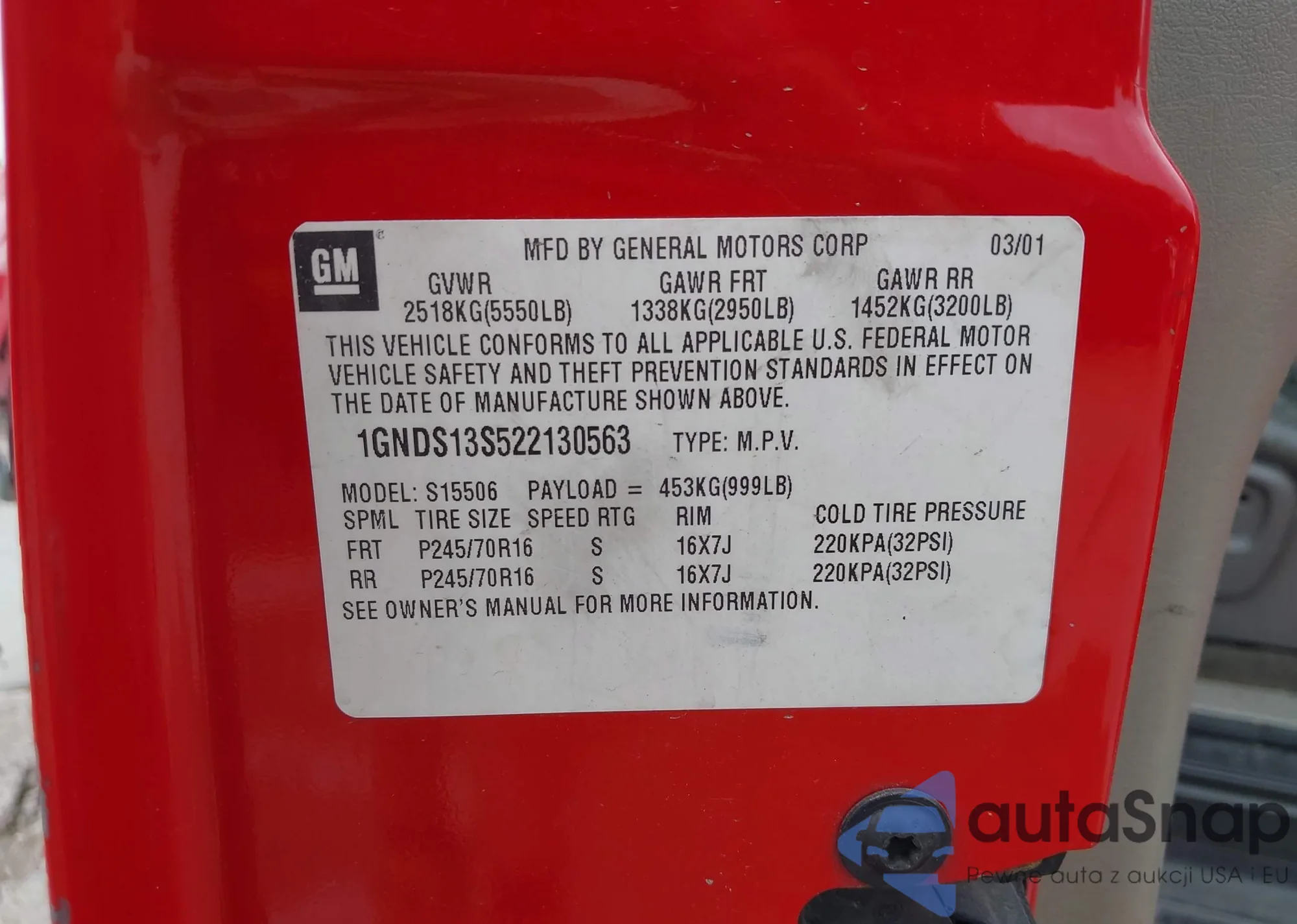 LOT: 42360579 VIN: 1GNDS13S522130563