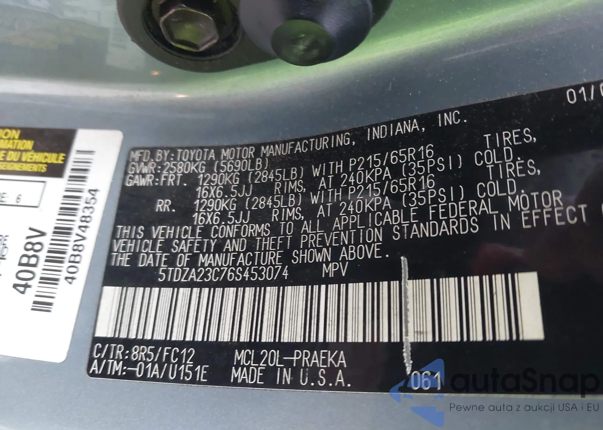 LOT: 42334088 VIN: JTDKN3DU5A0221183