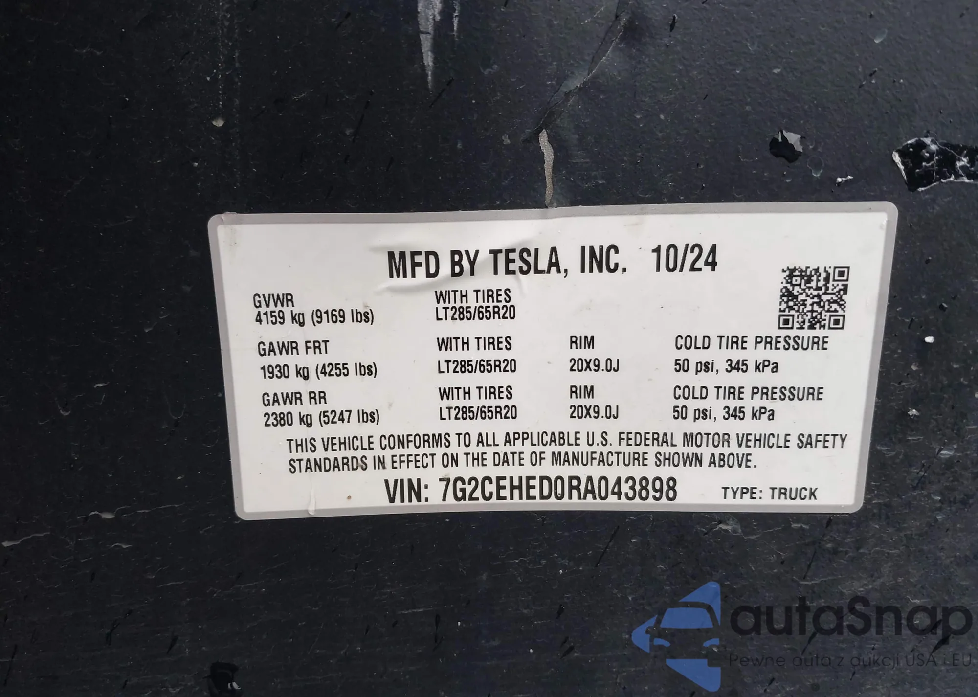 2024 Tesla Cybertruck All-Wheel Drive z USA, uszkodzony, nr VIN 7G2CEHED0RA043898