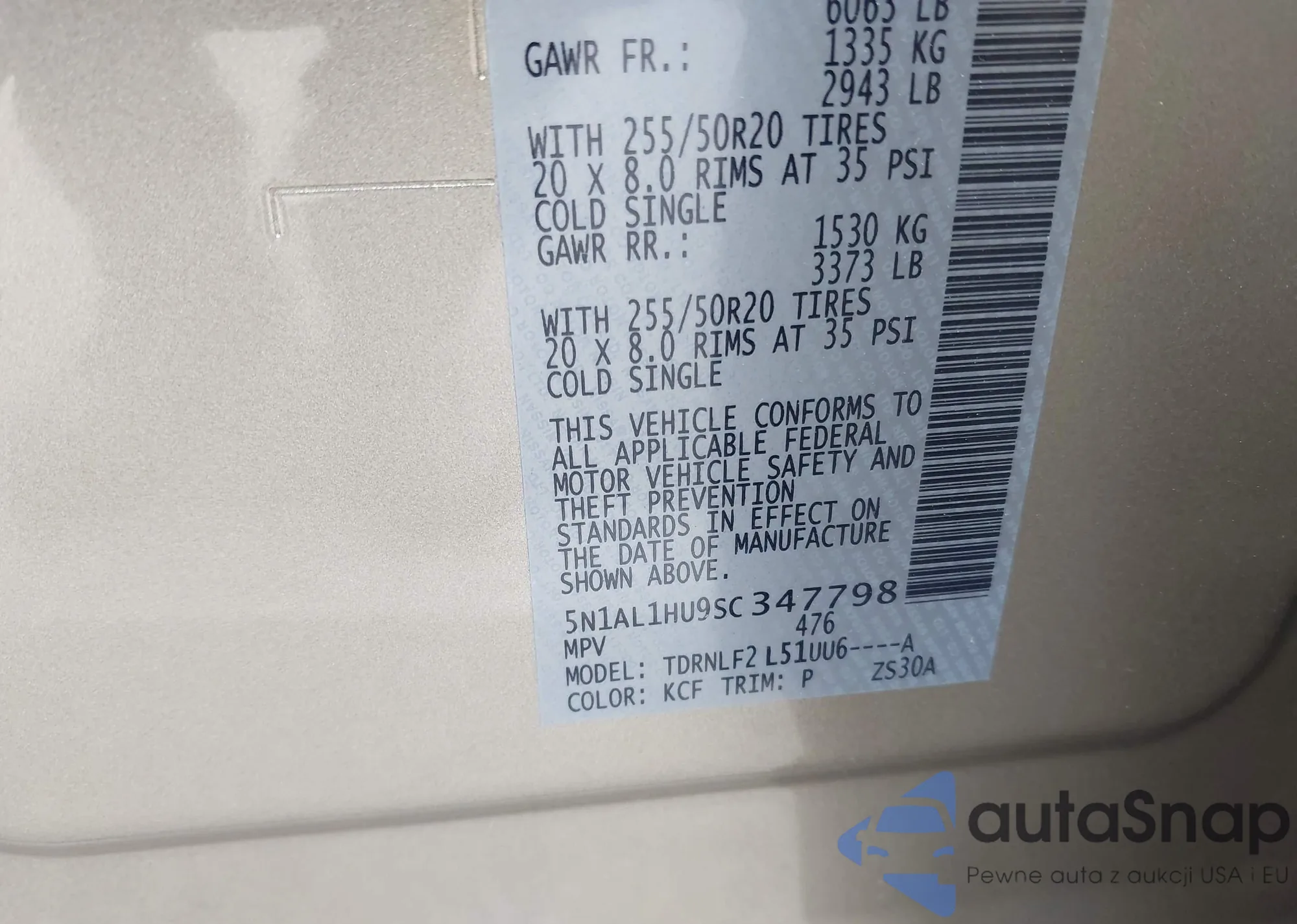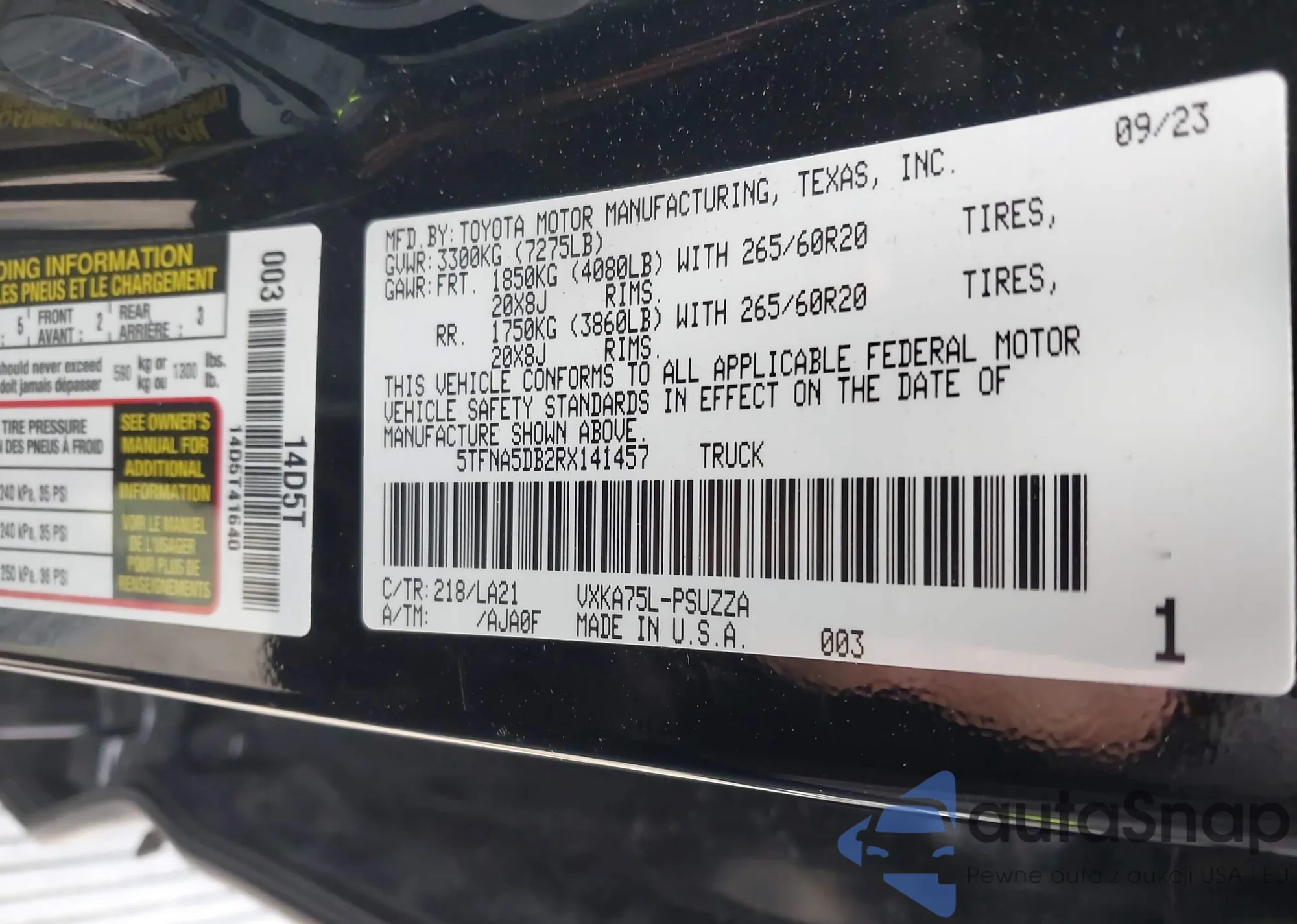 LOT: 41111945 VIN: 1FMSK8DH6PGC33797