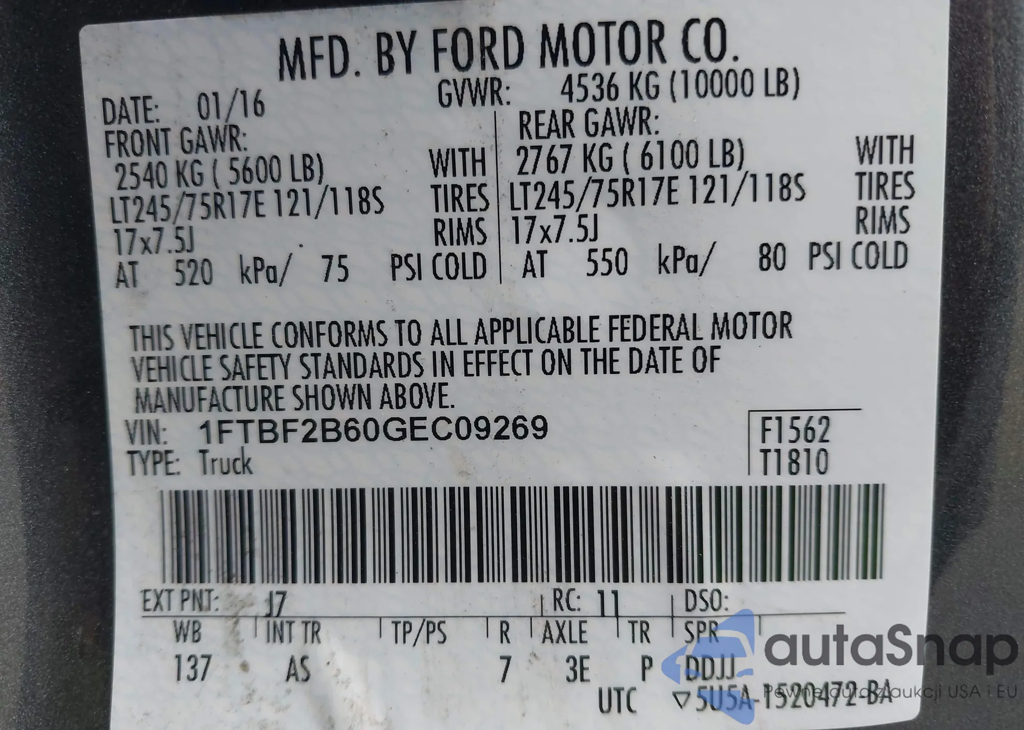 • VIN 1FTBF2B60GEC09269
