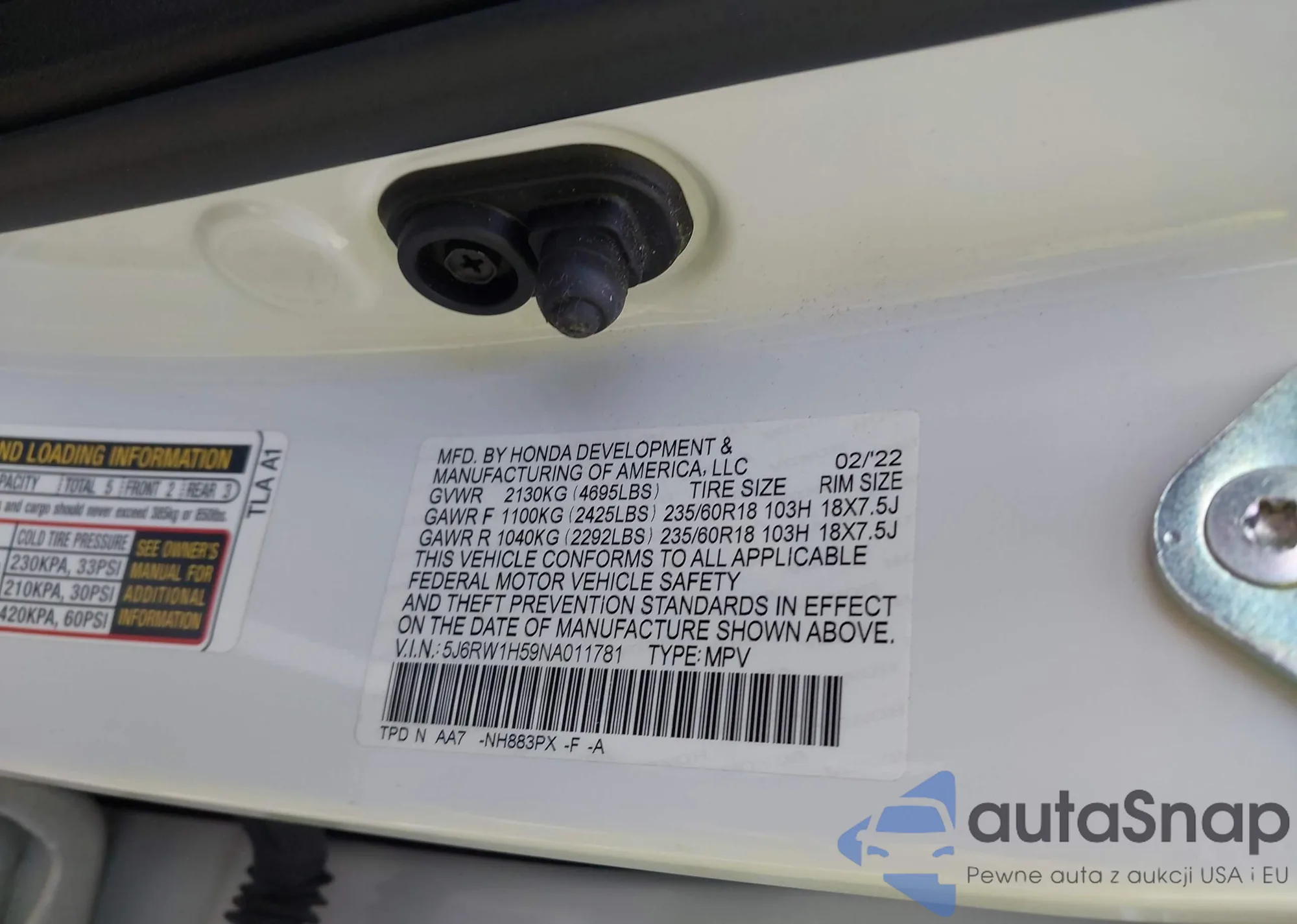 • VIN JHLRD78965C039871