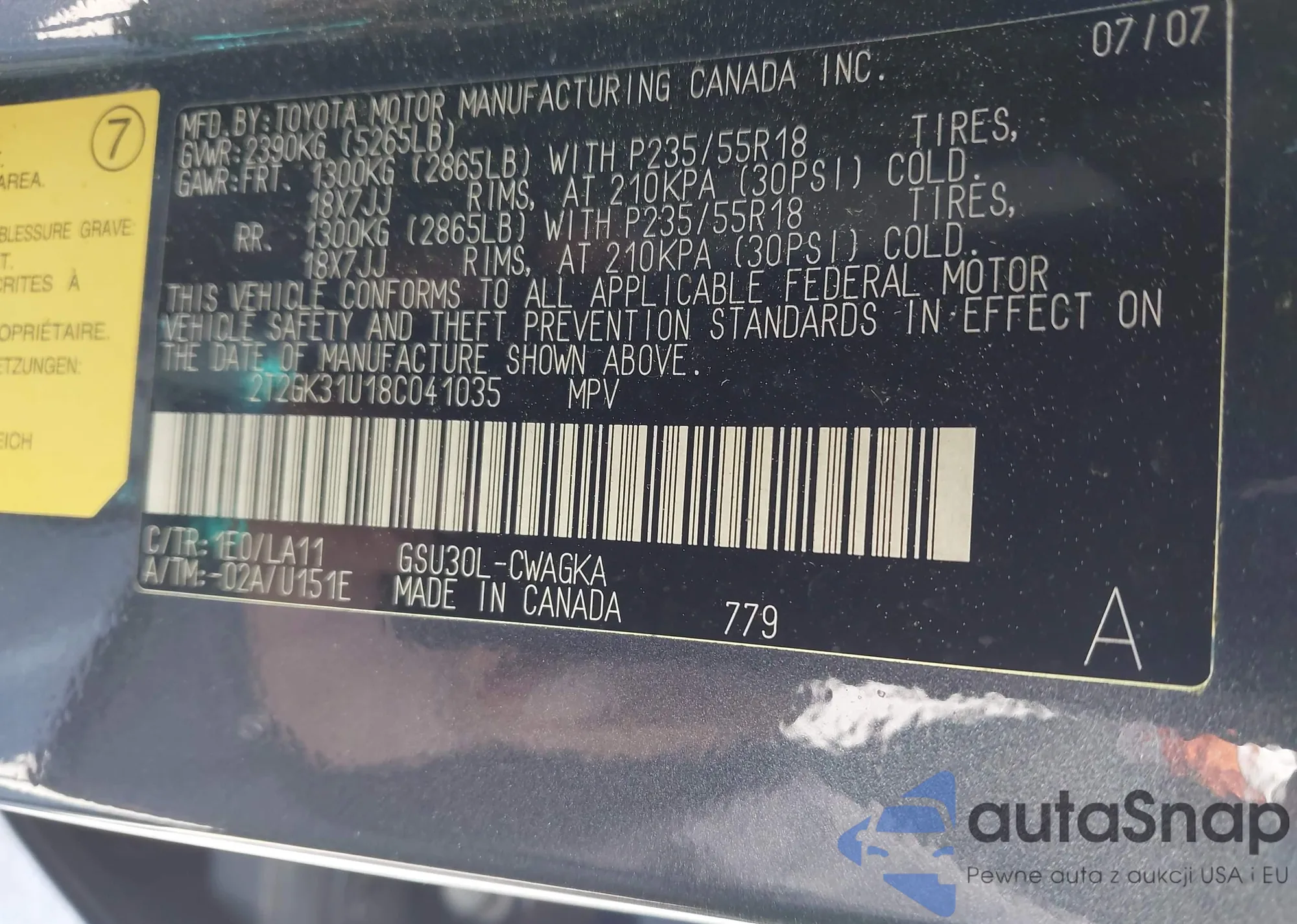 • VIN 2T2GK31U18C041035