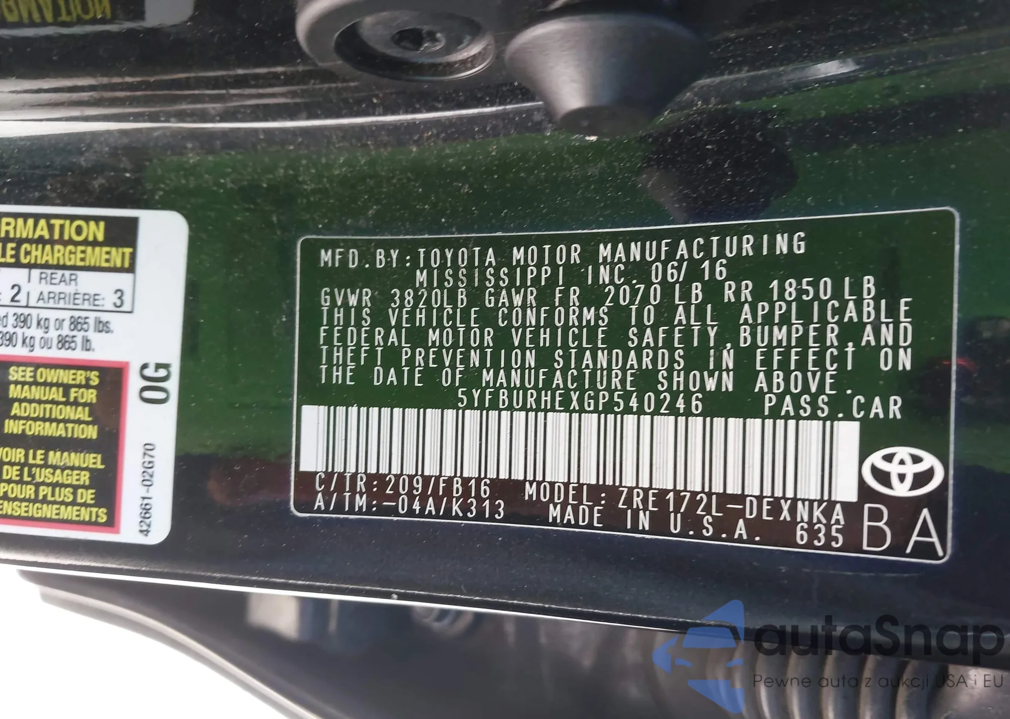 • VIN 5YFBURHEXGP540246