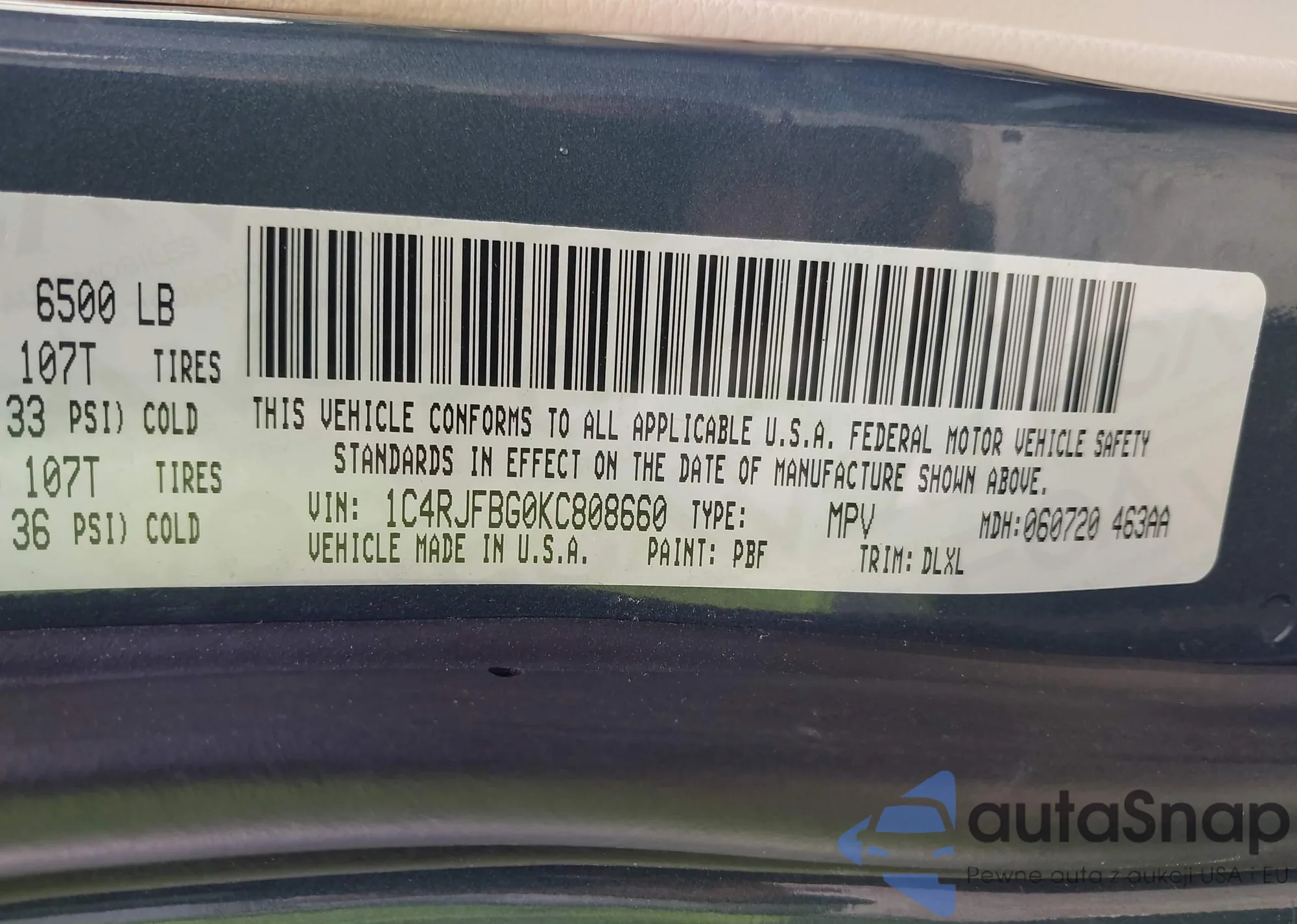 • VIN 1C4RJFBG0KC808660