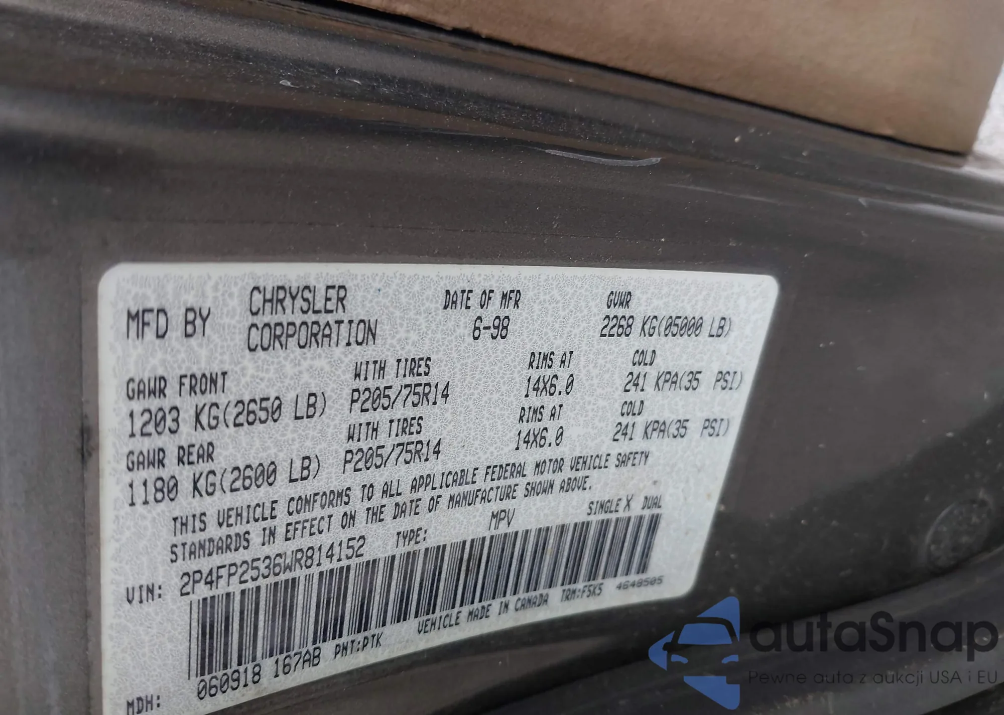 • VIN 2P4FP2536WR814152