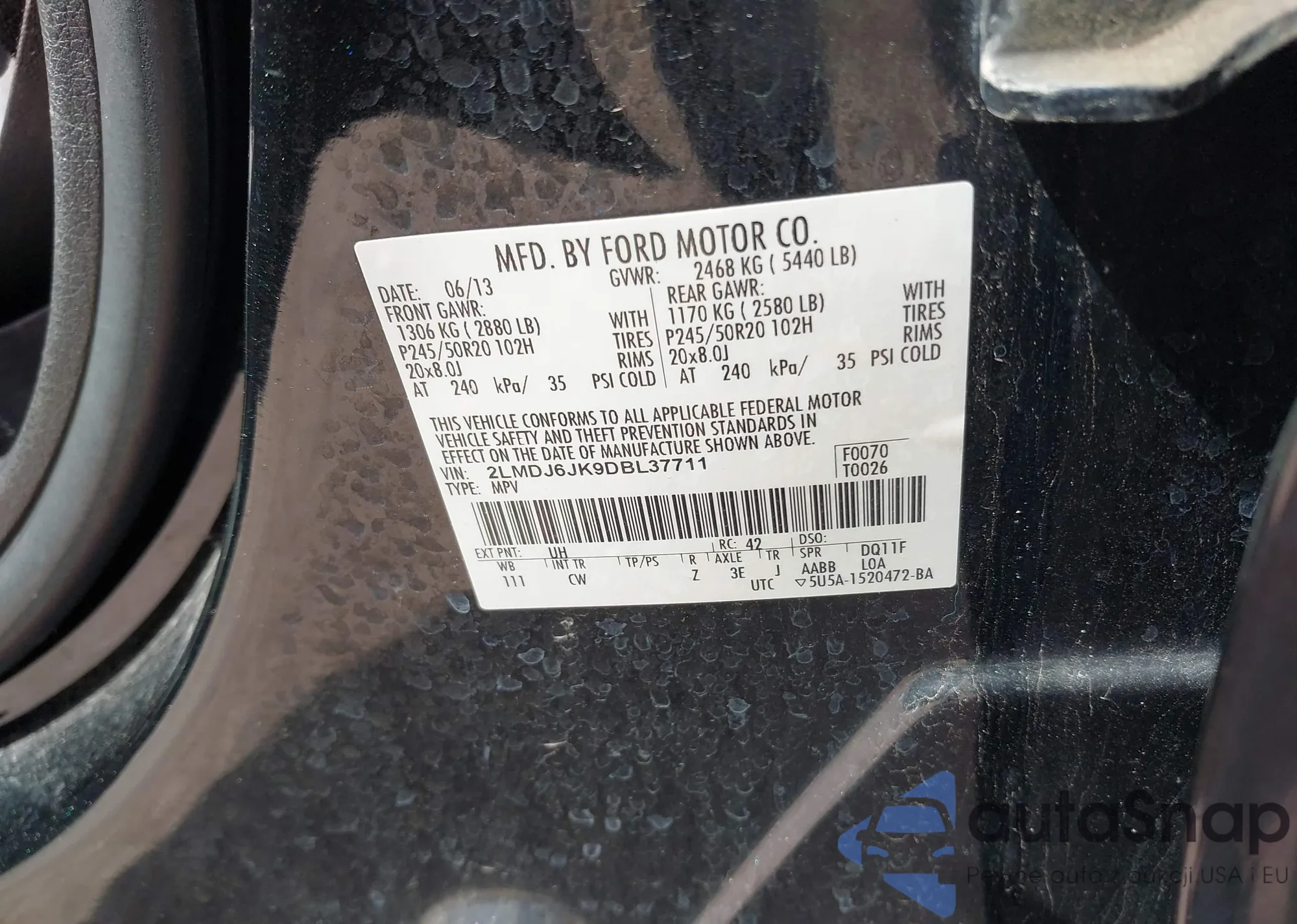 LOT: 42403867 VIN: 2FMPK3K98LBA61035