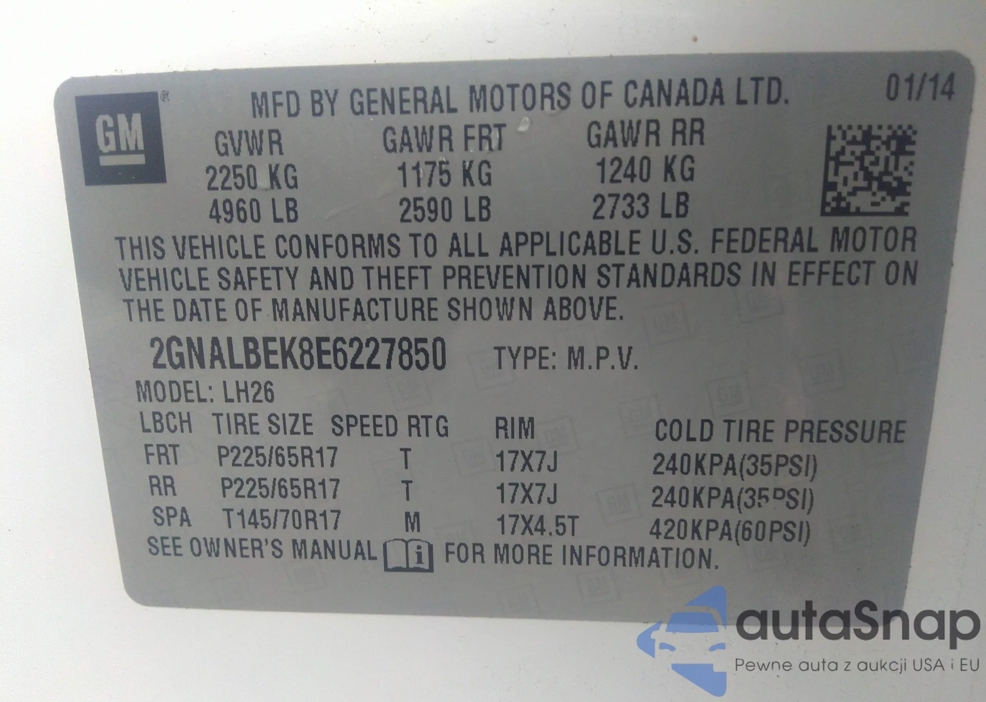 • VIN 2GNALBEK8E6227850