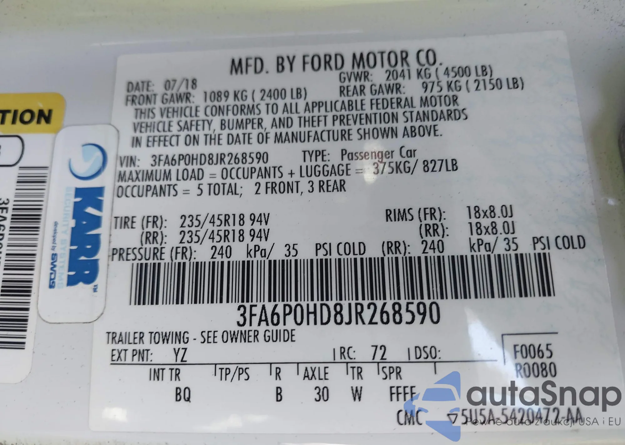 LOT: 42394736 VIN: KM8J3CA43JU659145