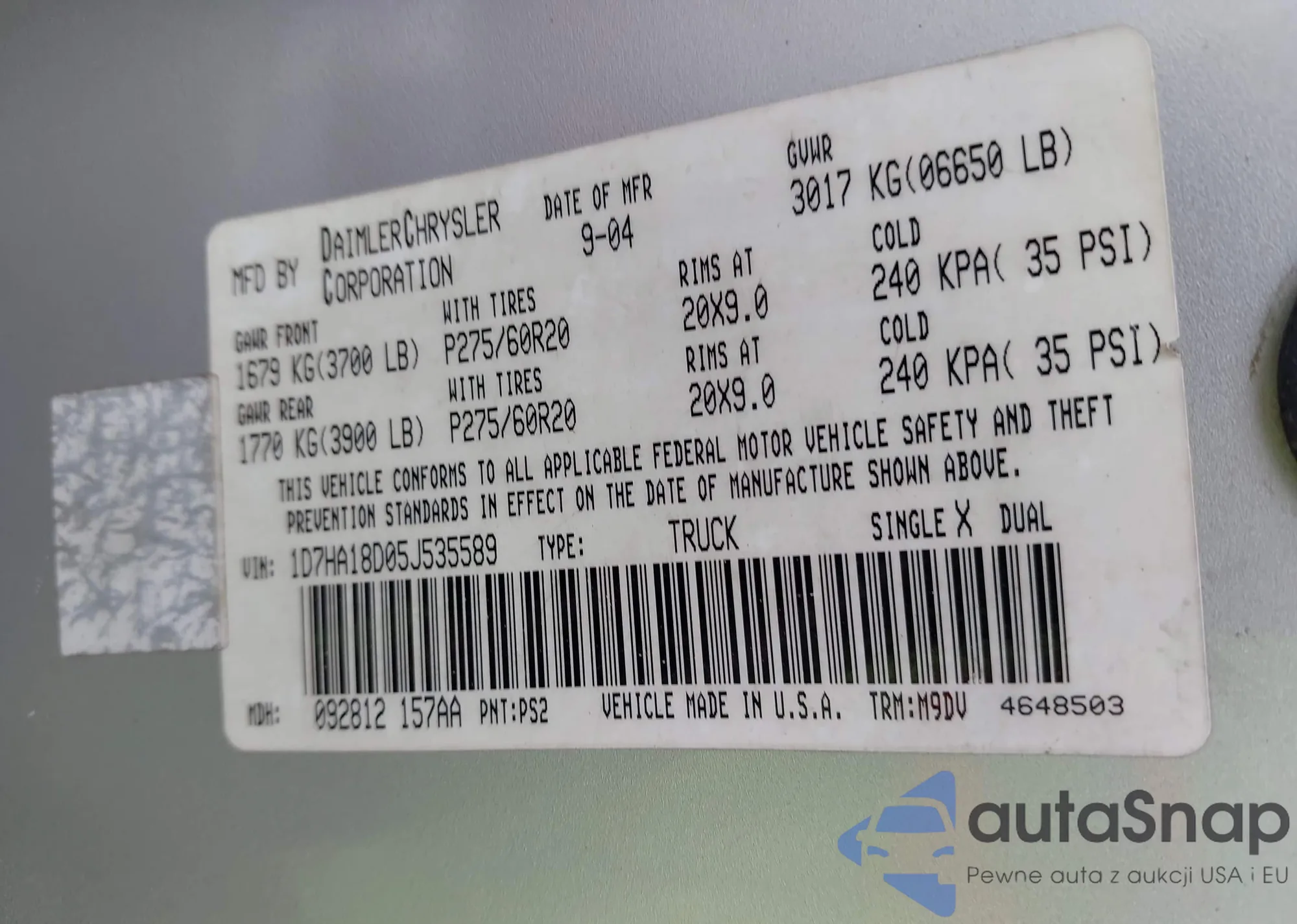 LOT: 42112493 VIN: 1FTRW14819FB03479