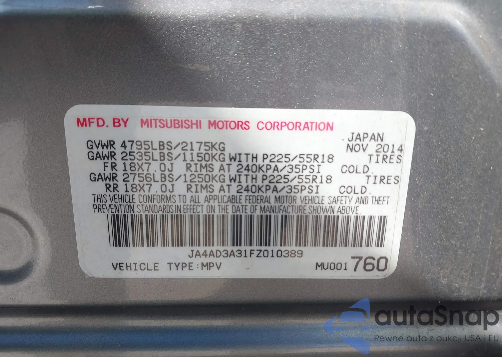 • VIN JA4AD3A31FZ010389