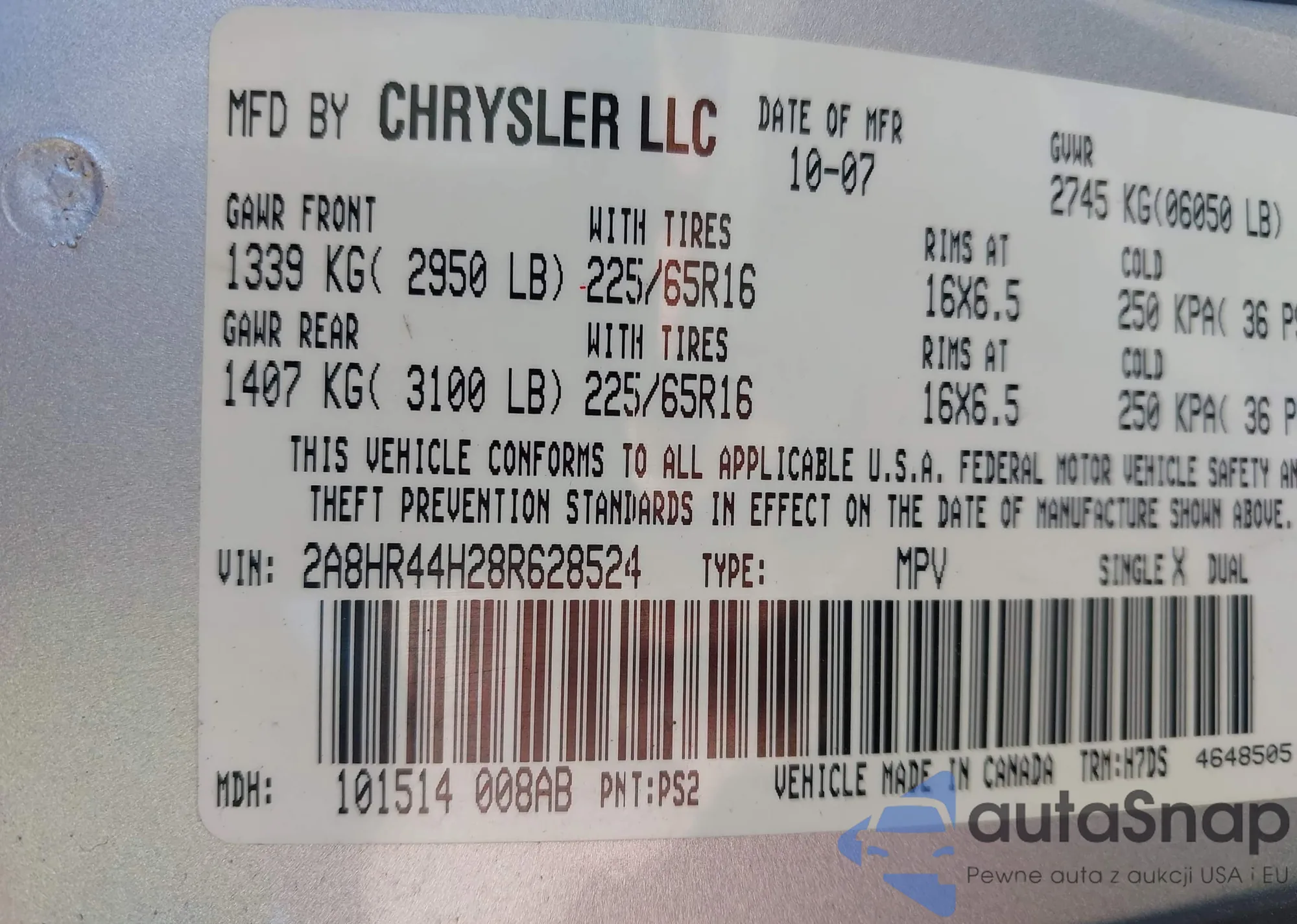 • VIN 3GKFK16Z13G270861