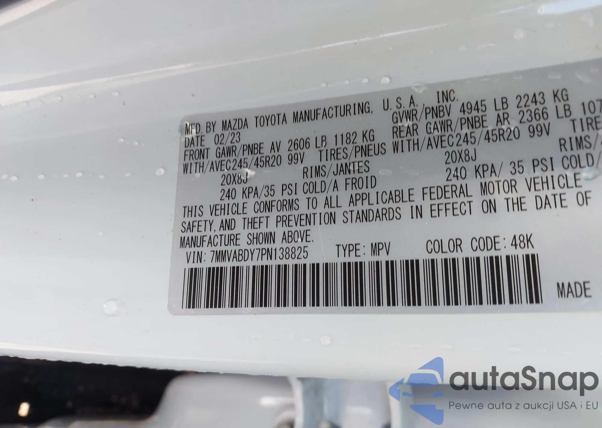 • VIN 7MMVABDY7PN138825