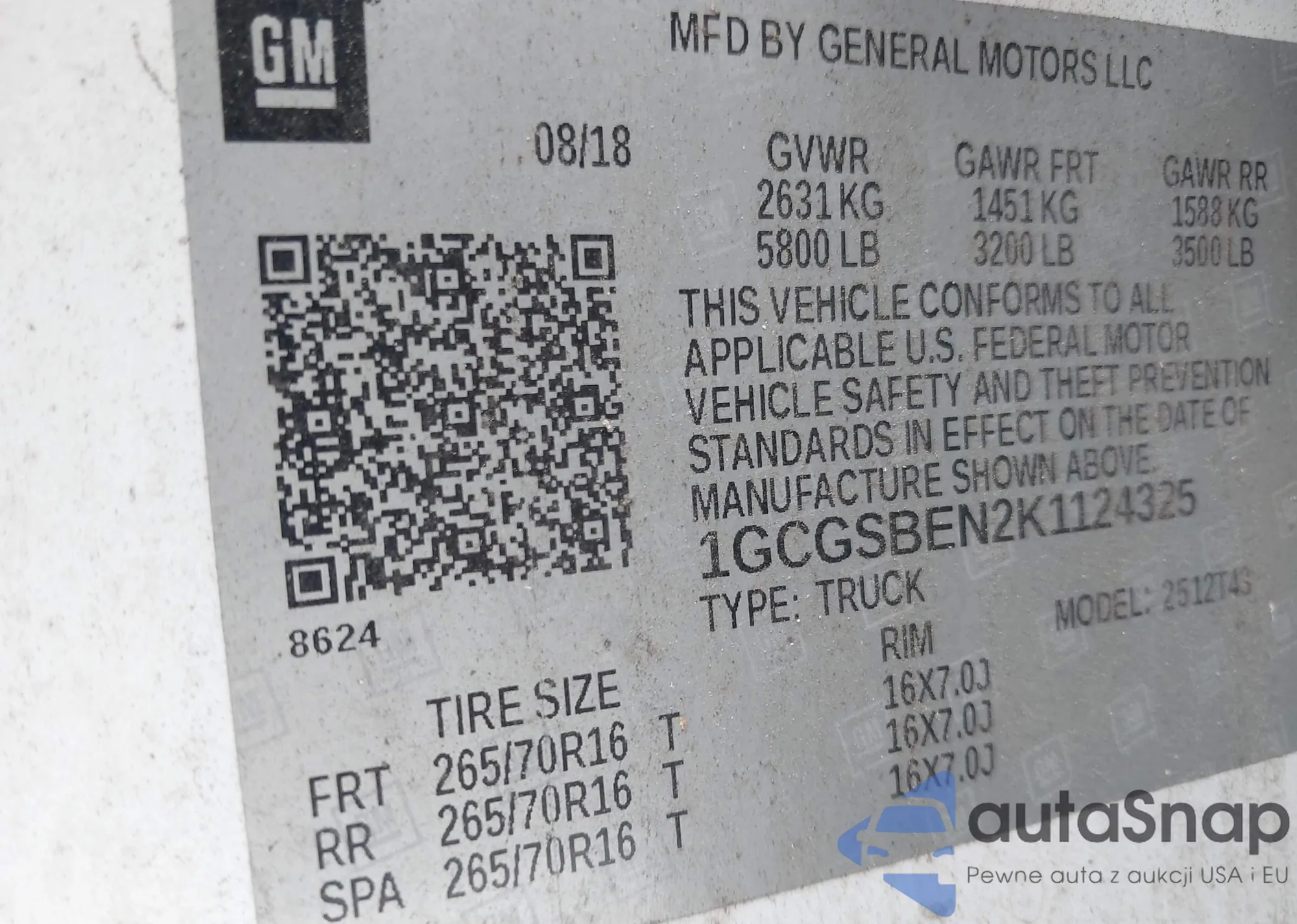 LOT: 42283799 VIN: 1GKFC13017R315063