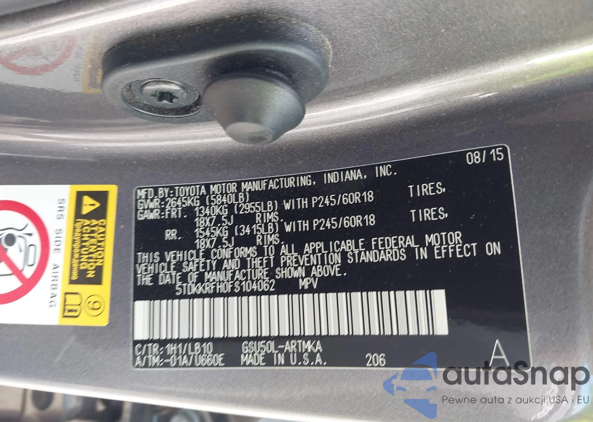 LOT: 42163423 VIN: 5TDYK3DC2FS659691
