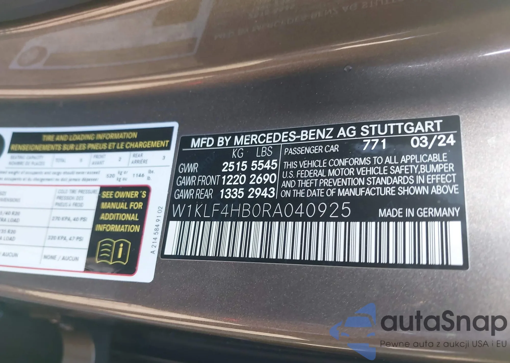 • VIN W1KLF4HB0RA040925