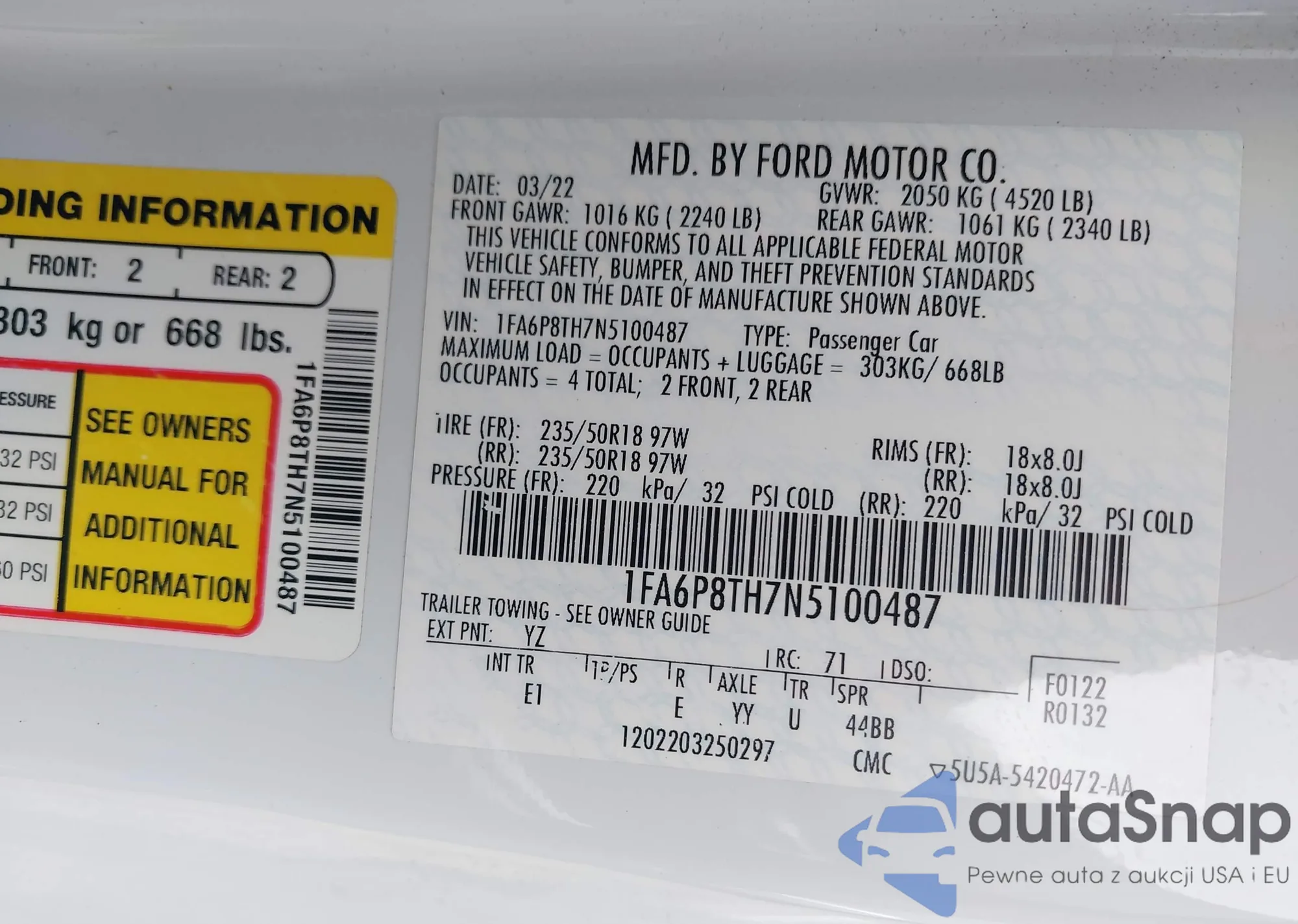 • VIN 1FA6P8TH7N5100487