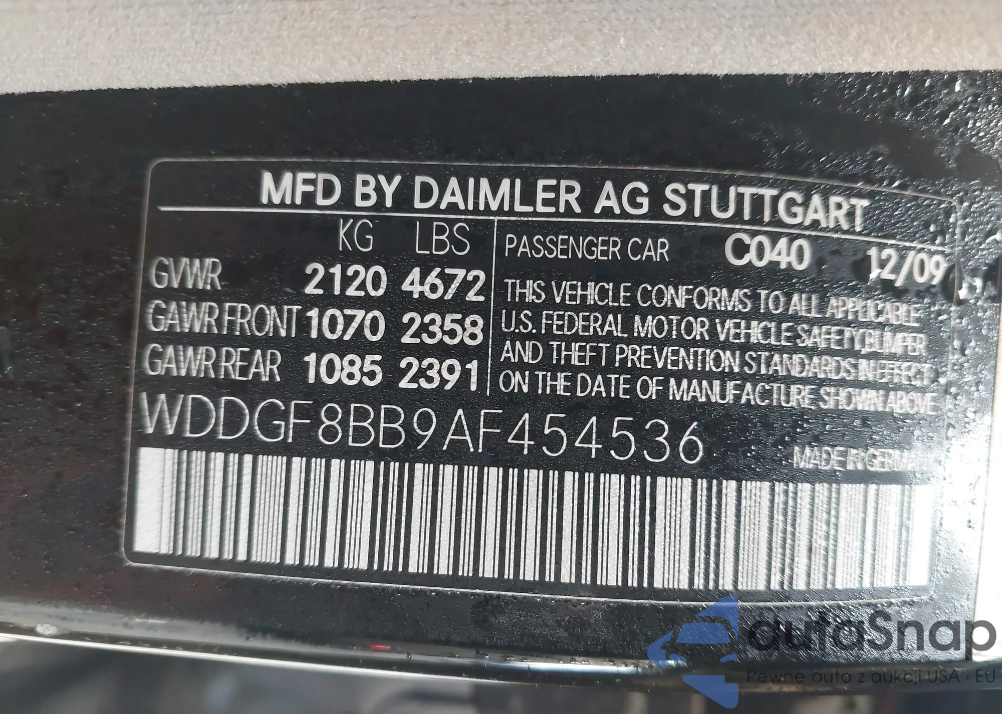 • VIN WDDGF8BB9AF454536