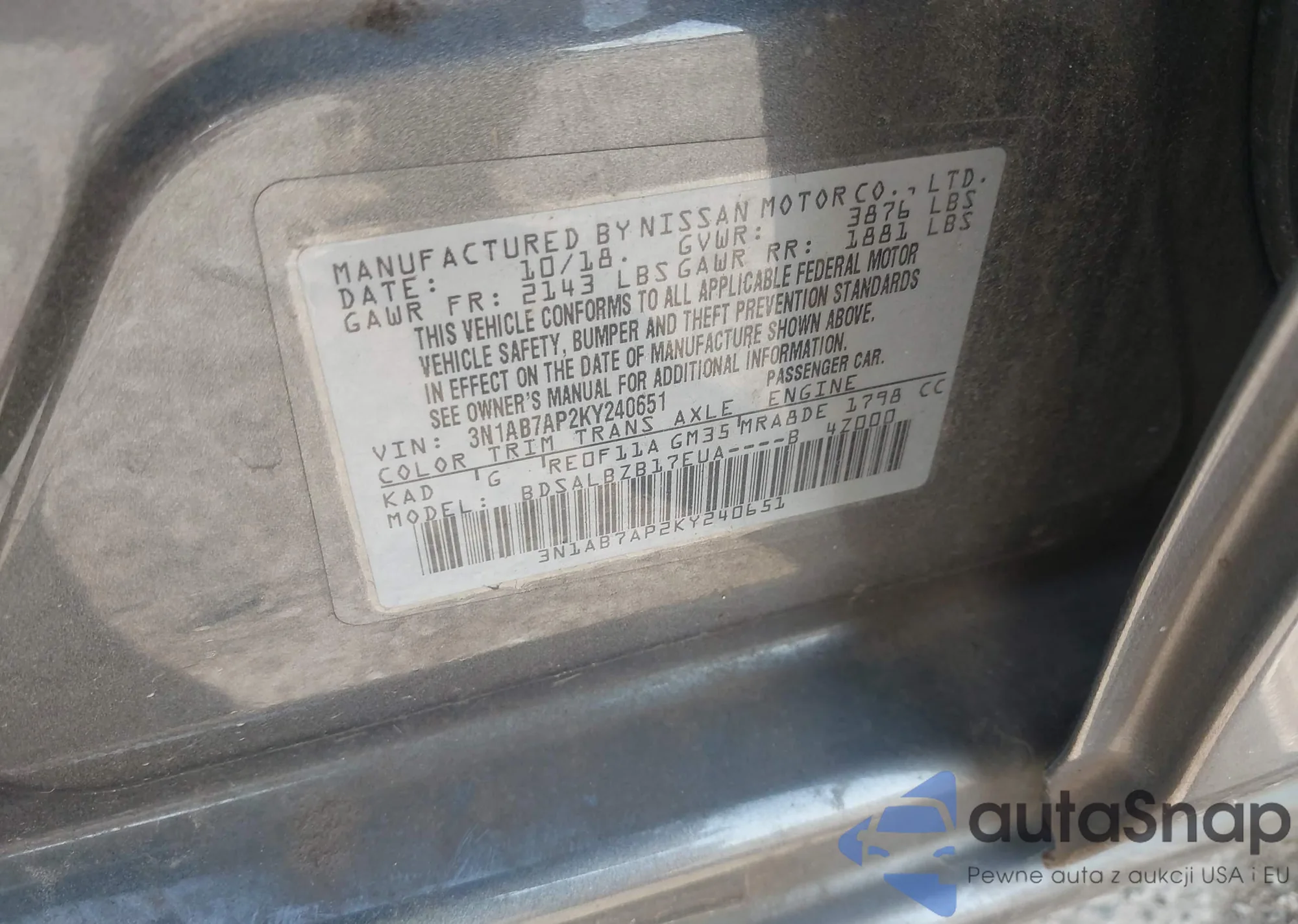 • VIN 3N1AB7AP2KY240651