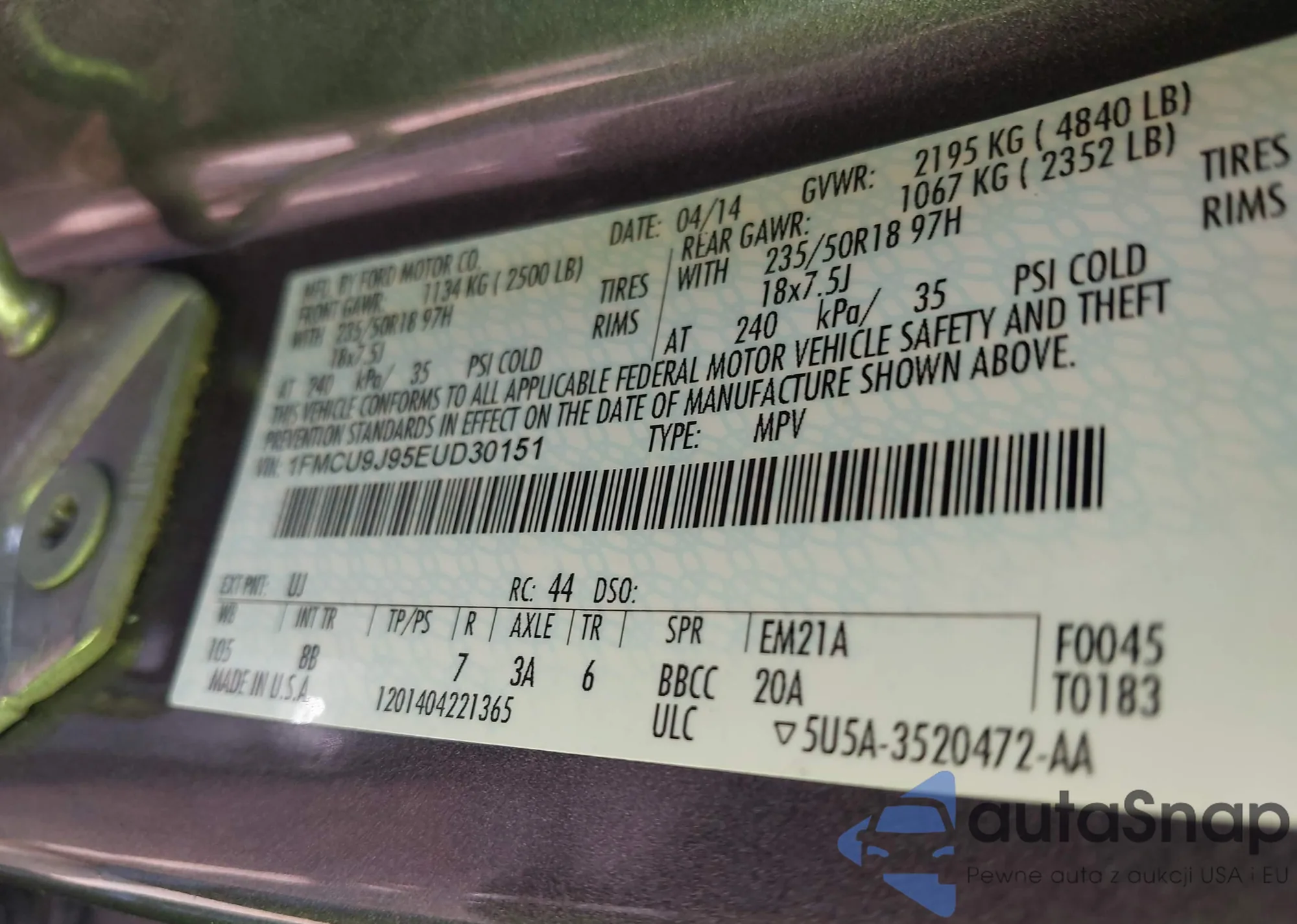 LOT: 42197127 VIN: 1FMCU9J95EUD30151