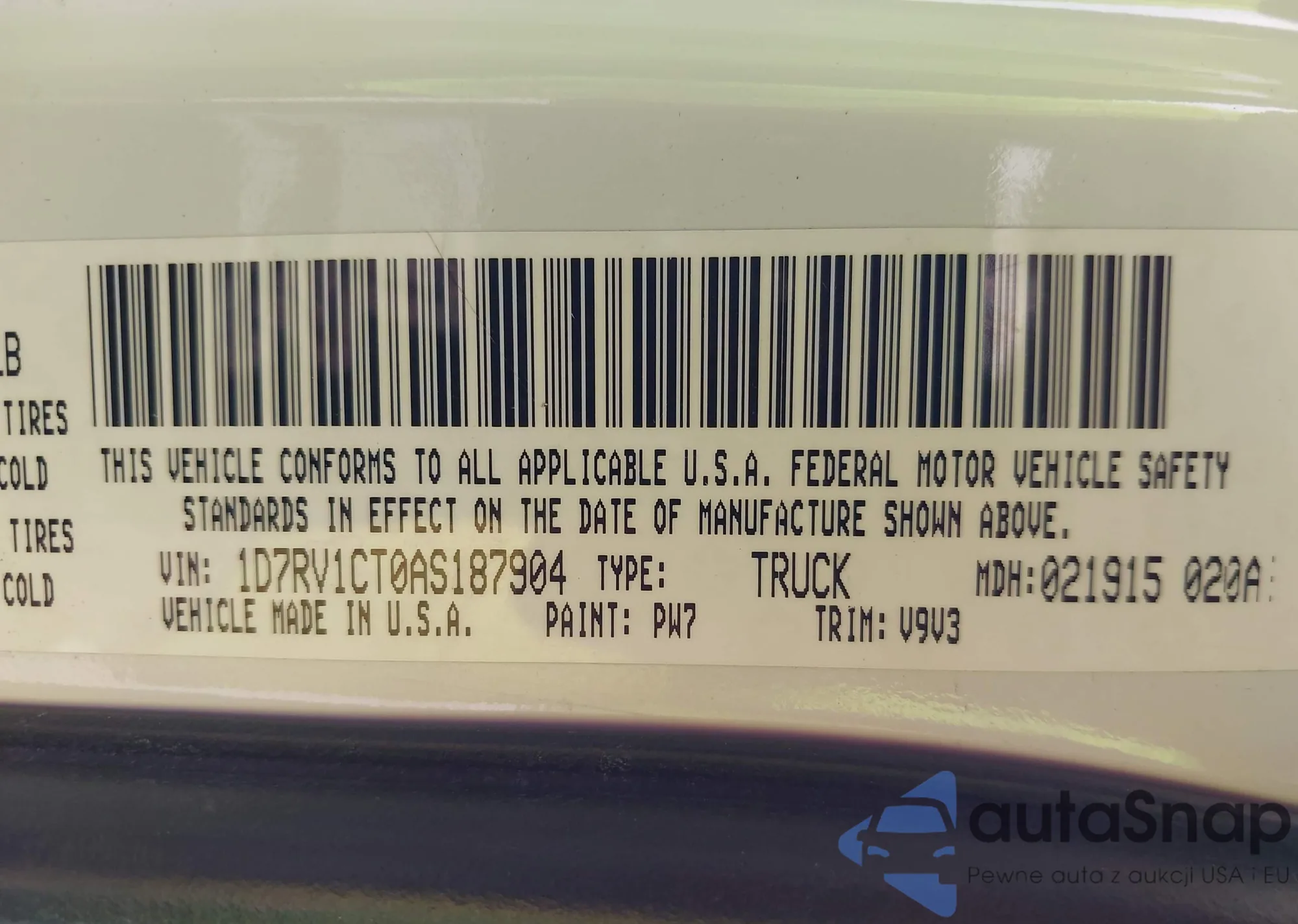• VIN 1D7RV1CT0AS187904