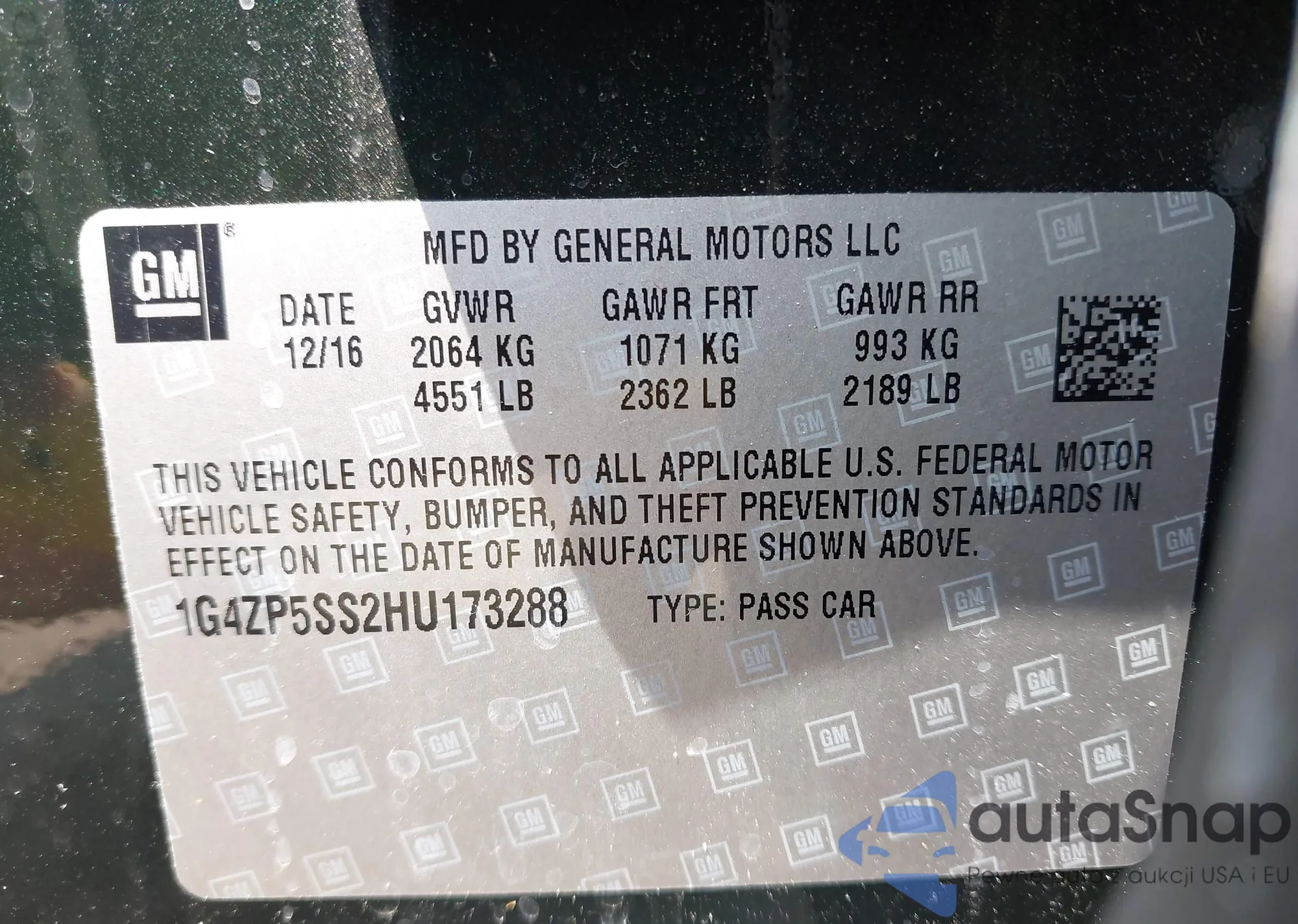 LOT: 42312059 VIN: 1G1AK18F987270109
