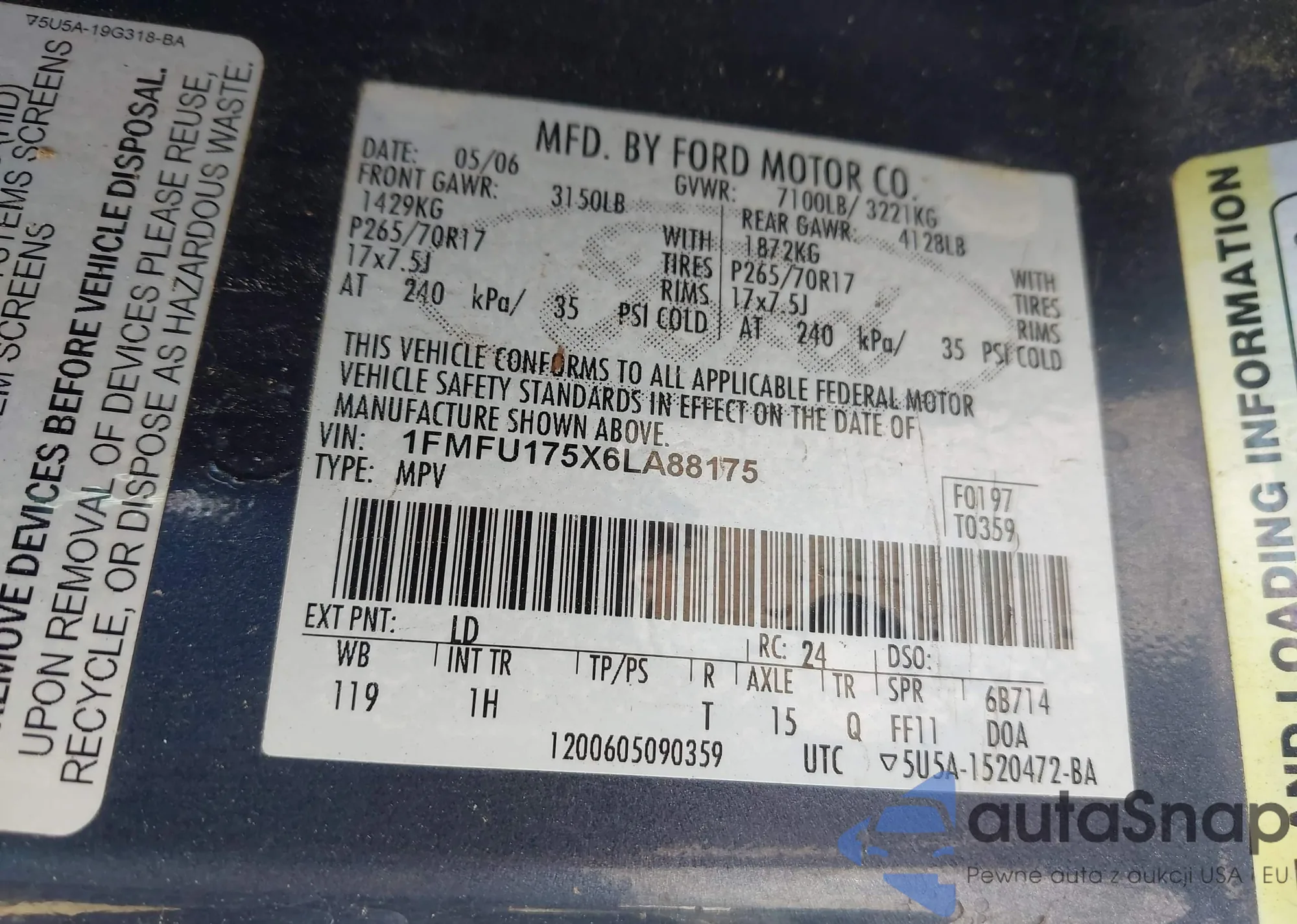 • VIN 1FMFU175X6LA88175
