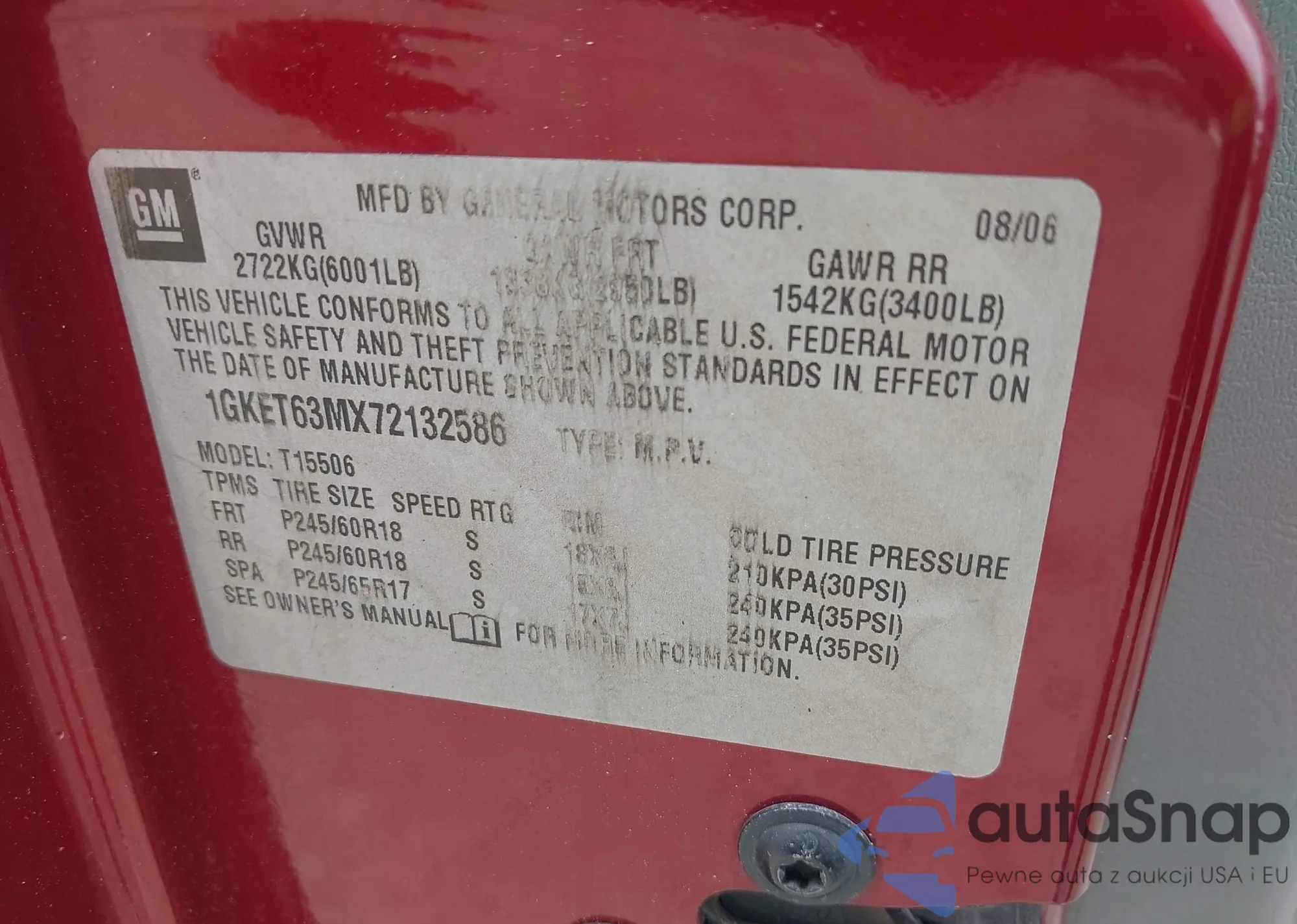 LOT: 42281465 VIN: YV1612FS6D2181783