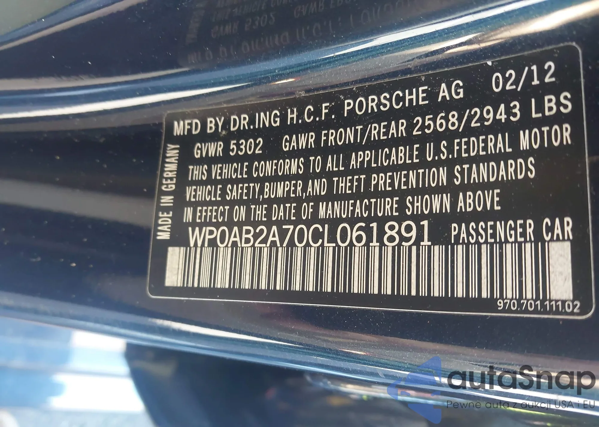 • VIN WP0AB2A70CL061891