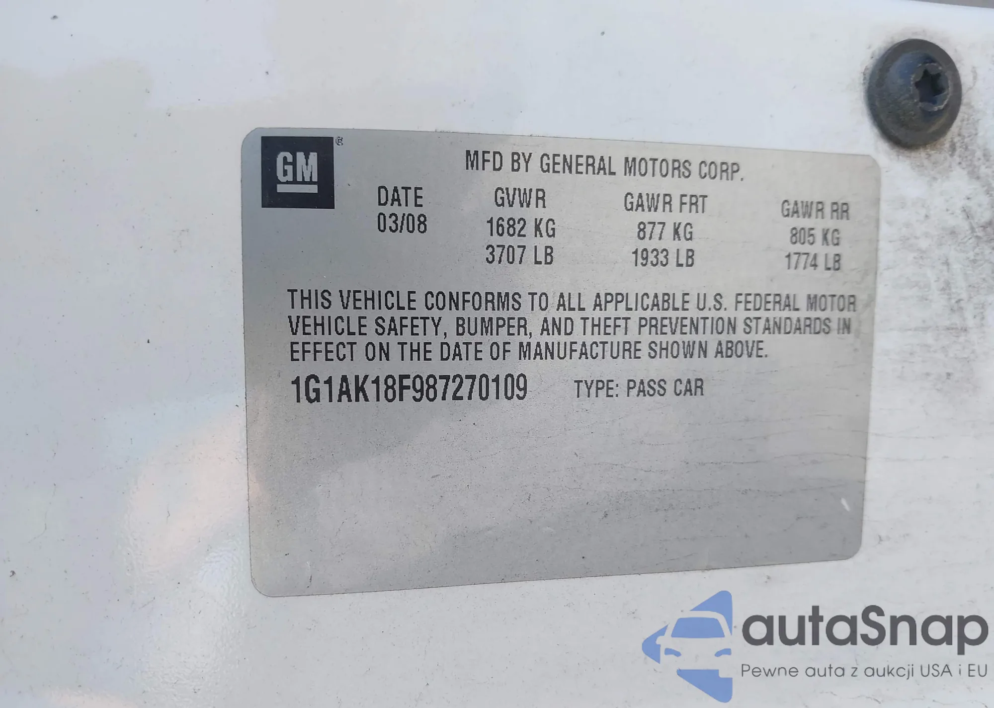 • VIN 1G1AK18F987270109