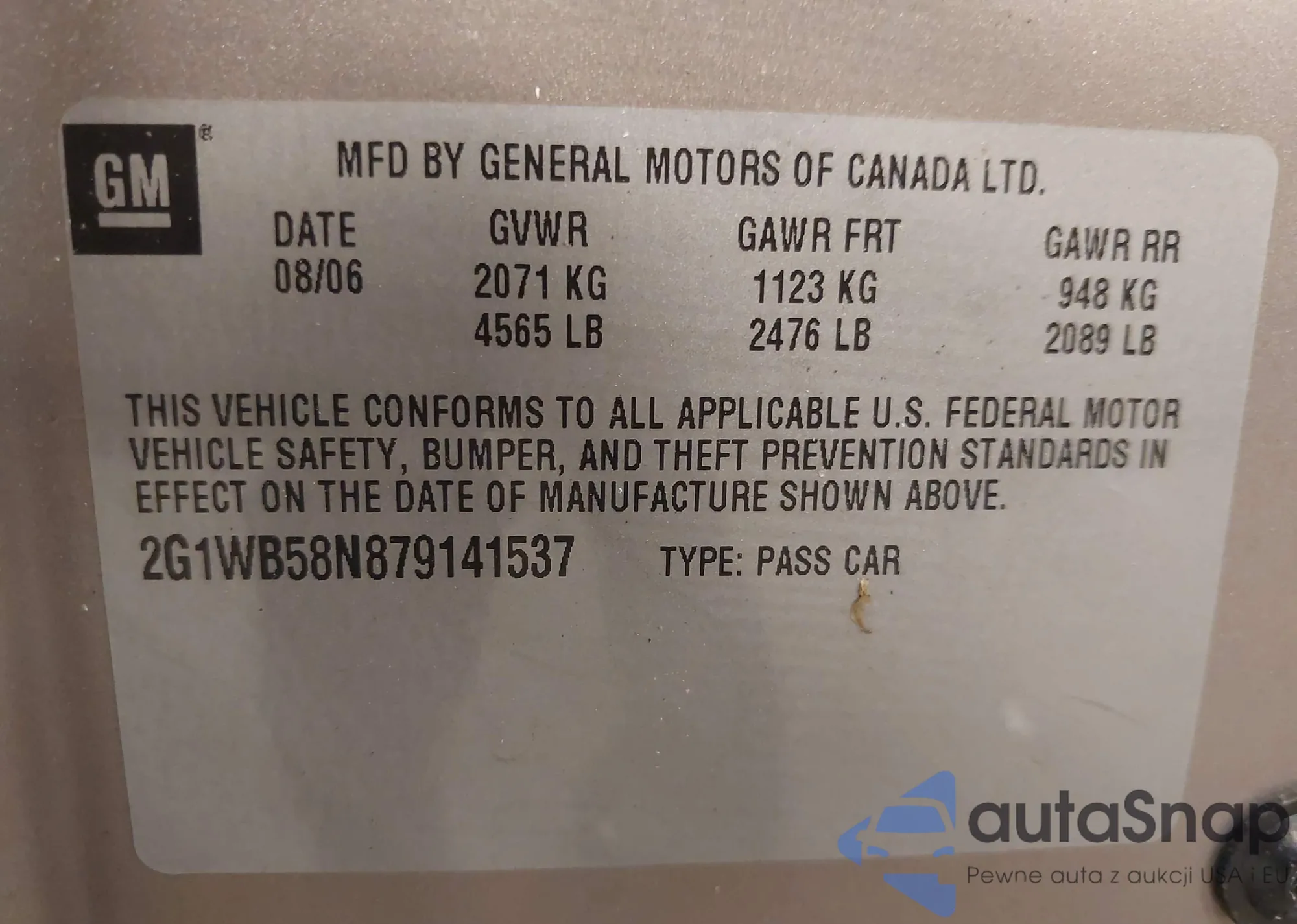 LOT: 42308555 VIN: 2G1WT55K889161599