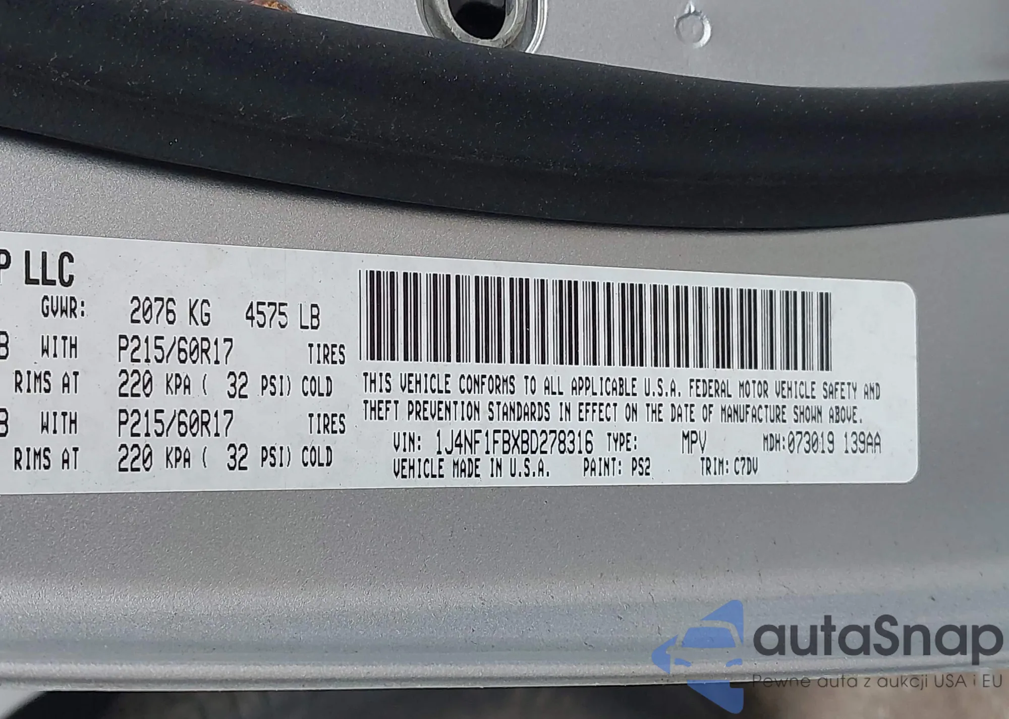 LOT: 42278433 VIN: 1J4NF1FBXBD278316