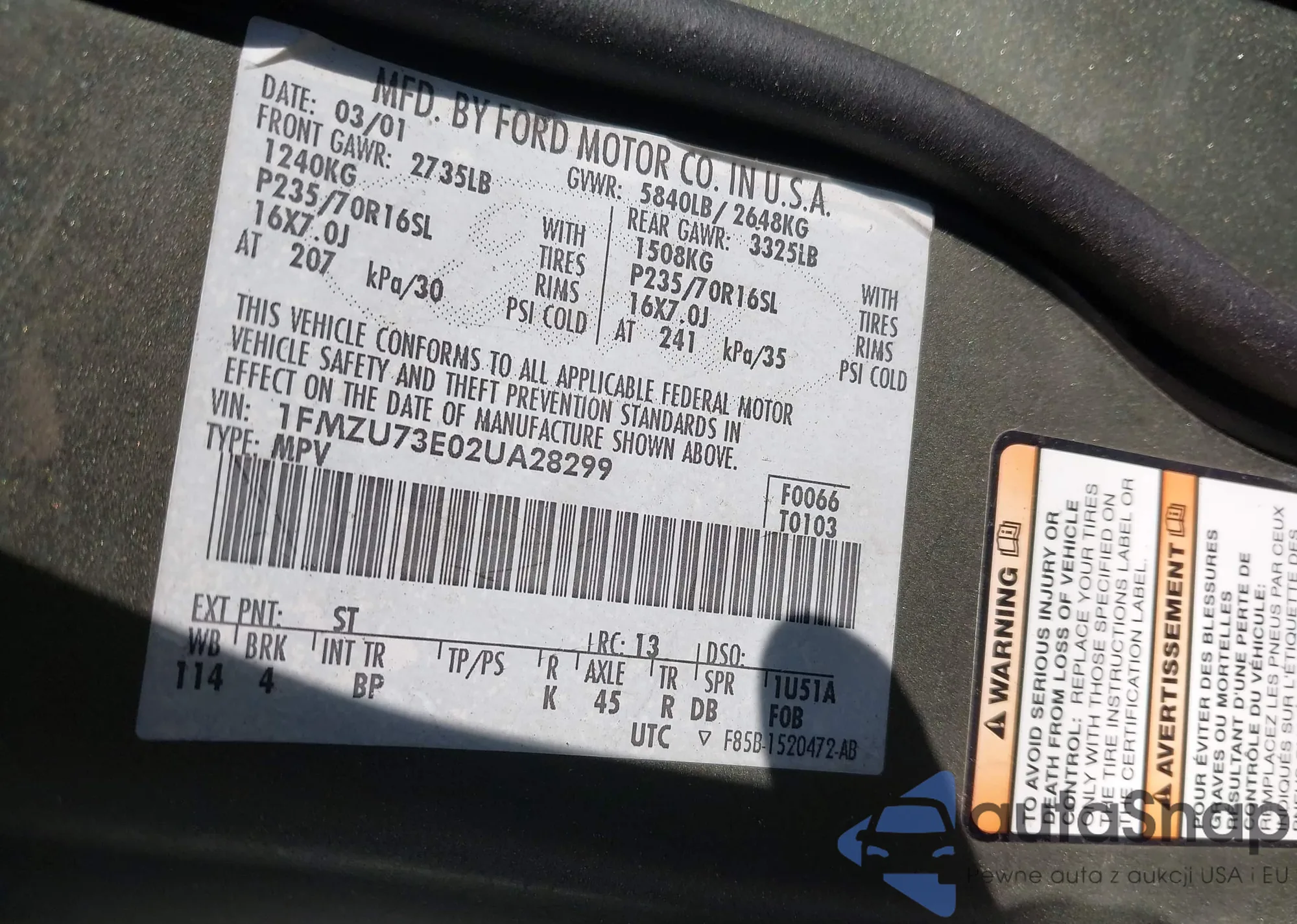 • VIN 1FMZU73E02UA28299