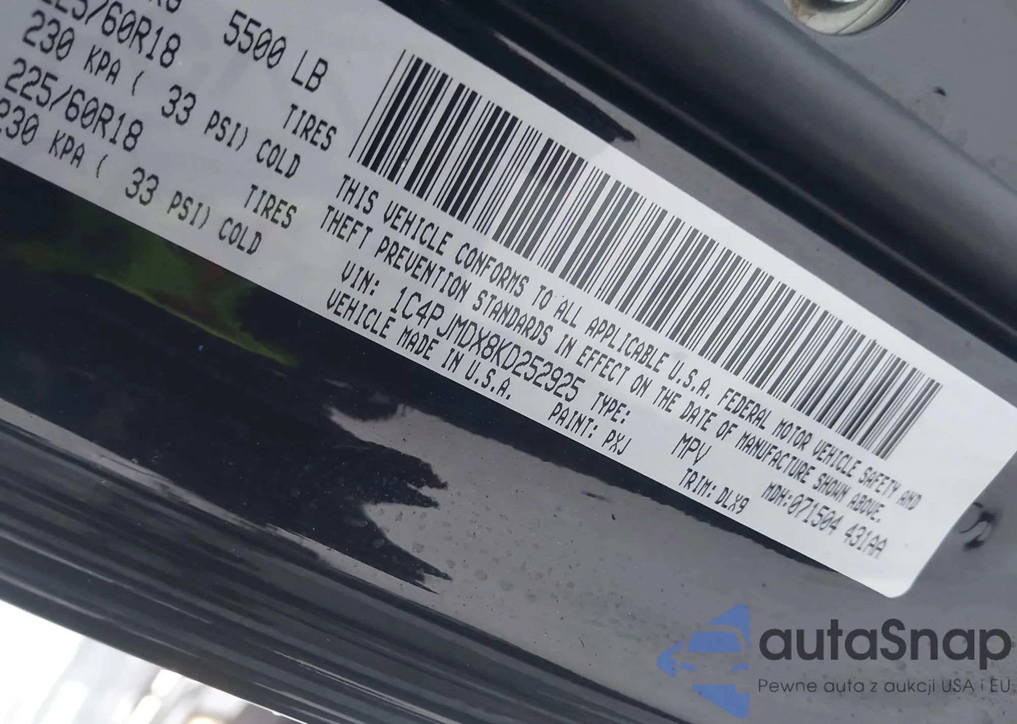 LOT: 41847786 VIN: 3C4PDDGG0KT858510