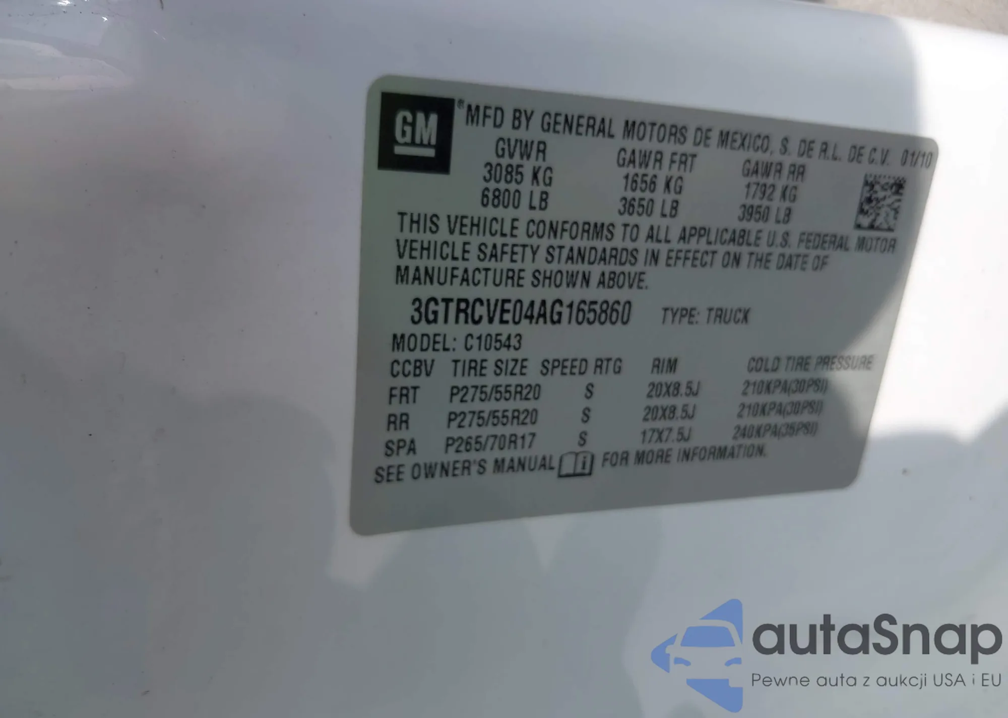 LOT: 42361801 VIN: 3GTRCVE04AG165860