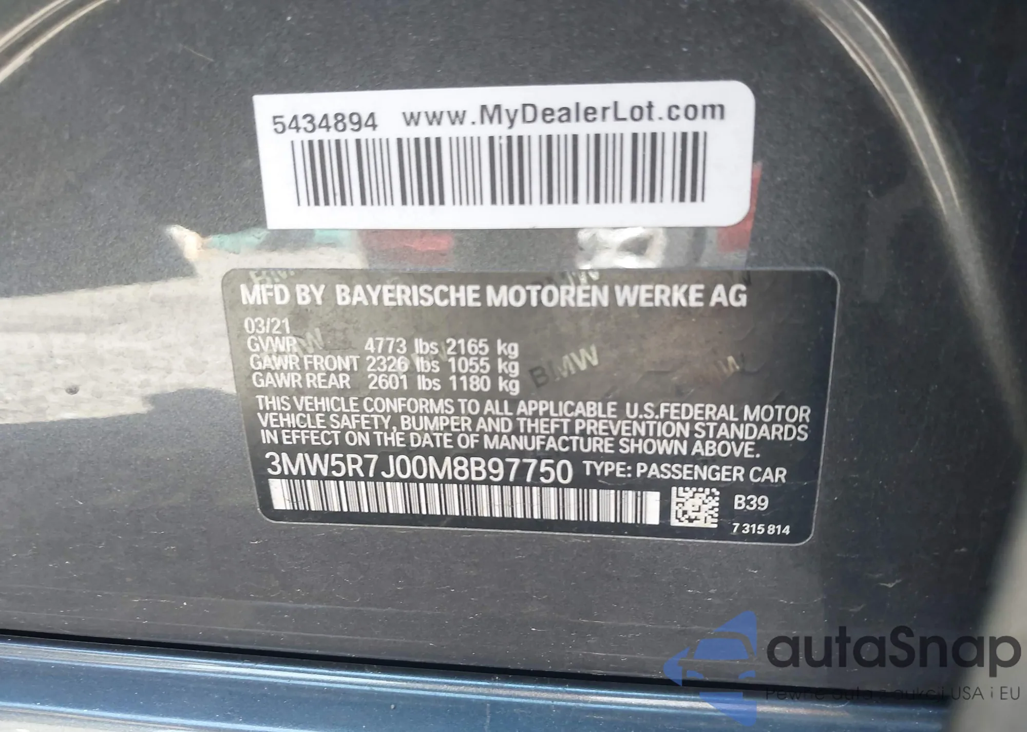 LOT: 41810399 VIN: 3MW5R7J00M8B97750
