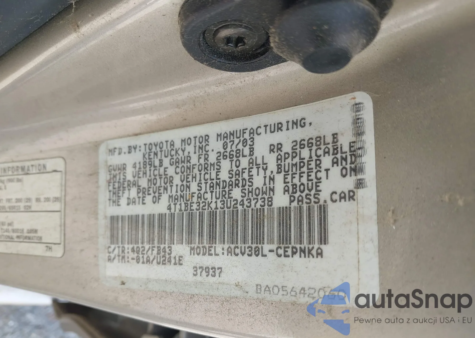 LOT: 42201028 VIN: WP0AA29837U762585