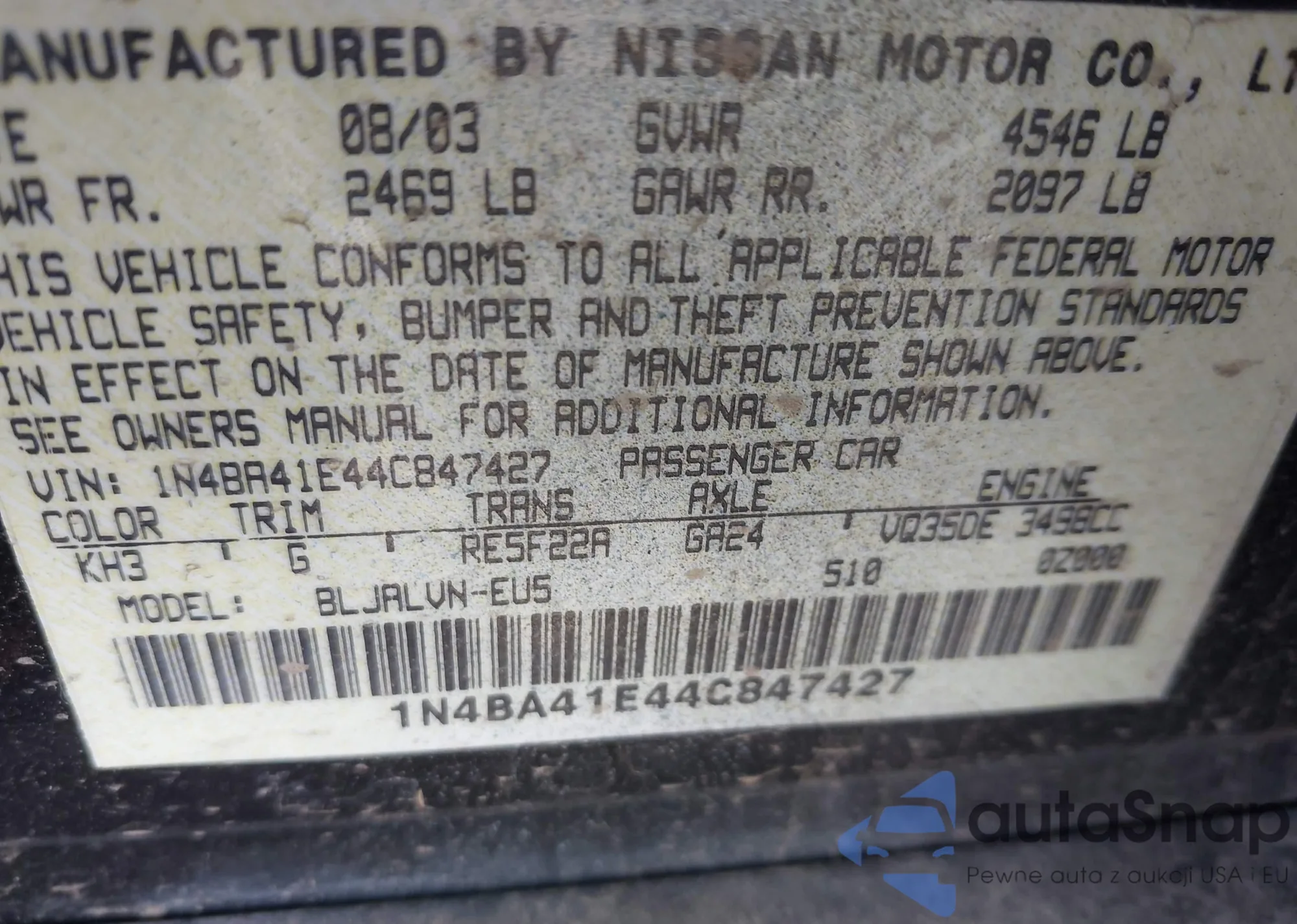 LOT: 42229366 VIN: 1N4BA41E44C847427