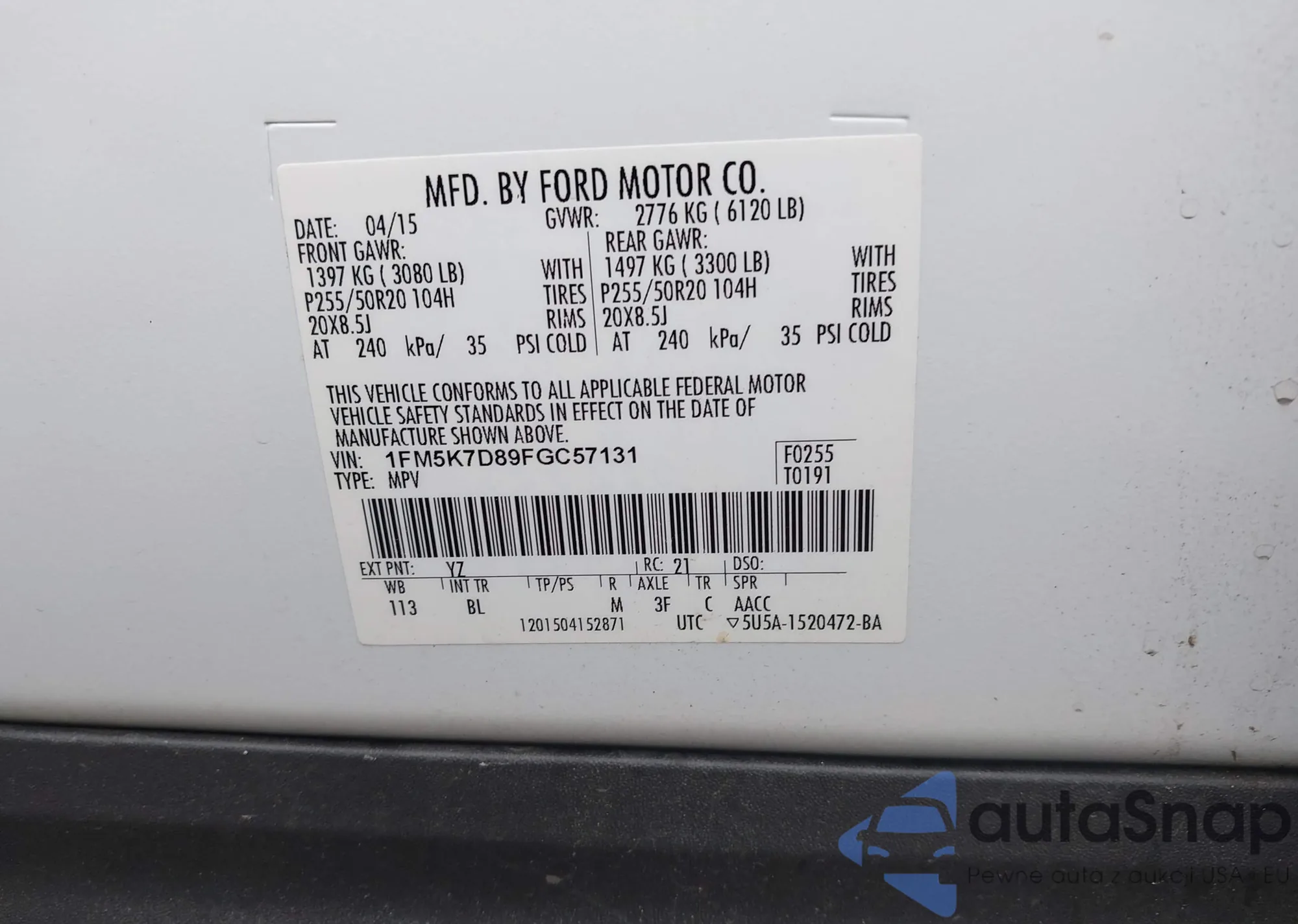 • VIN 1FM5K7D89FGC57131