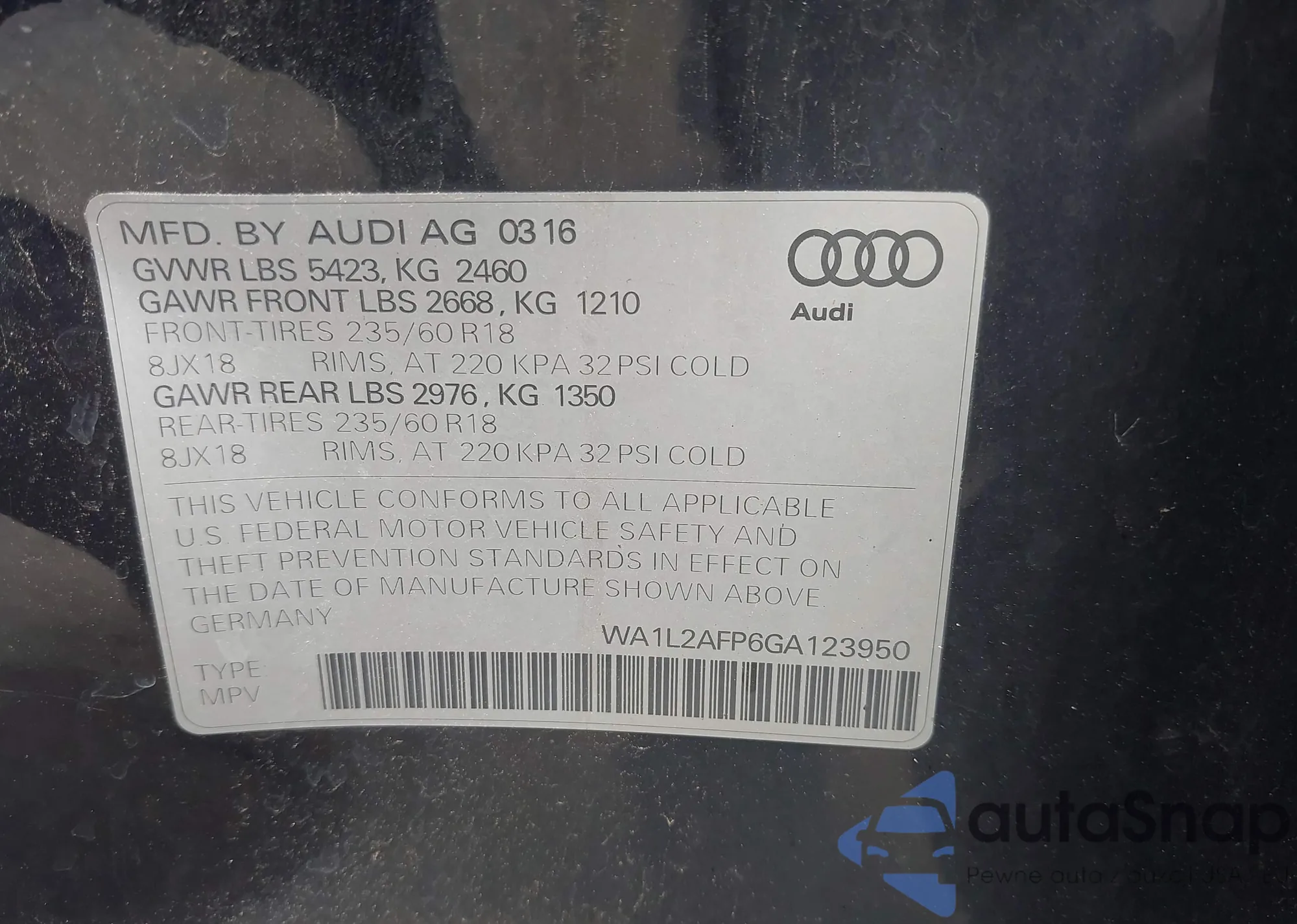 • VIN WA1L2AFP6GA123950