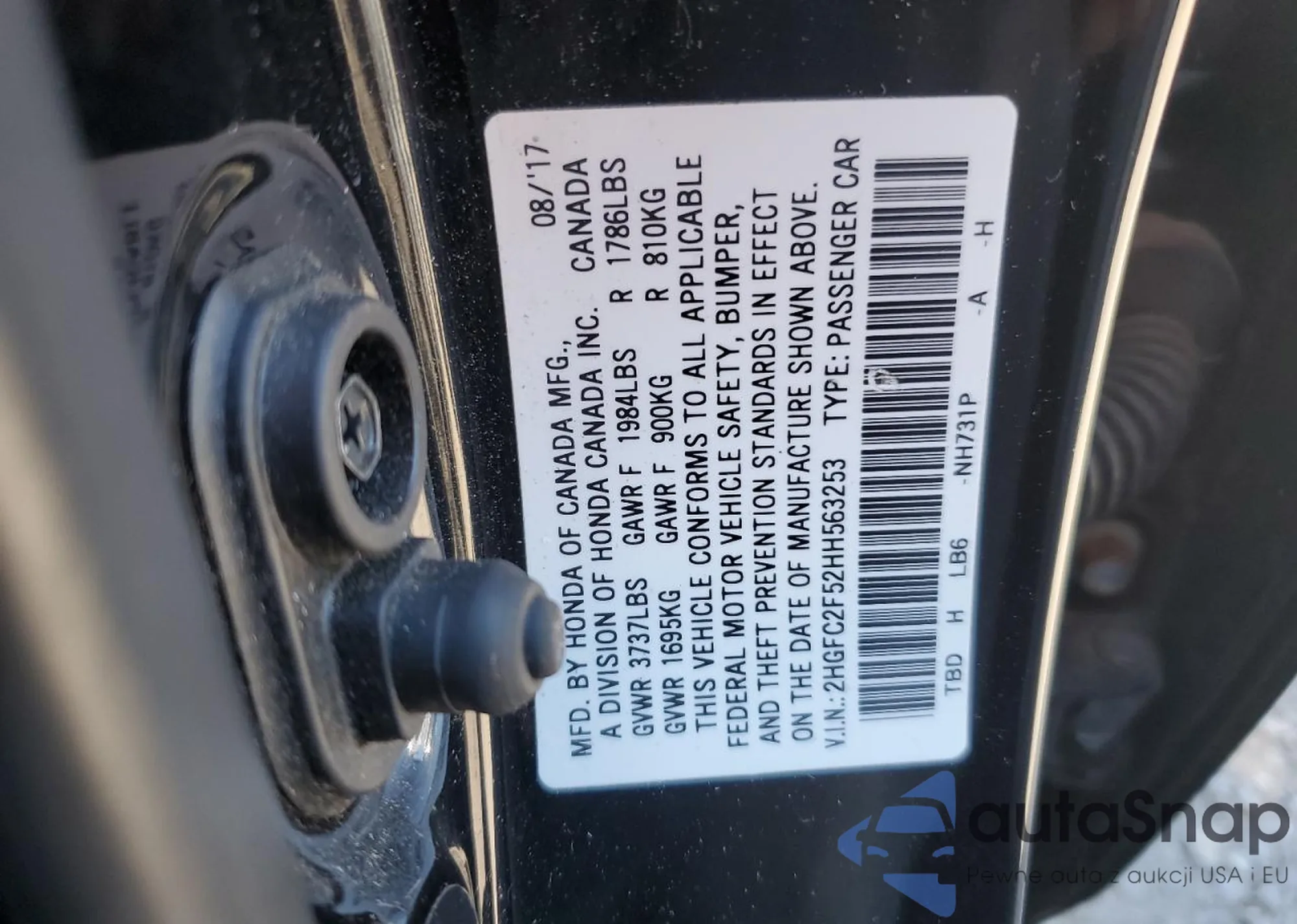 LOT: 56975865 VIN: 2HGFC2F52HH563253
