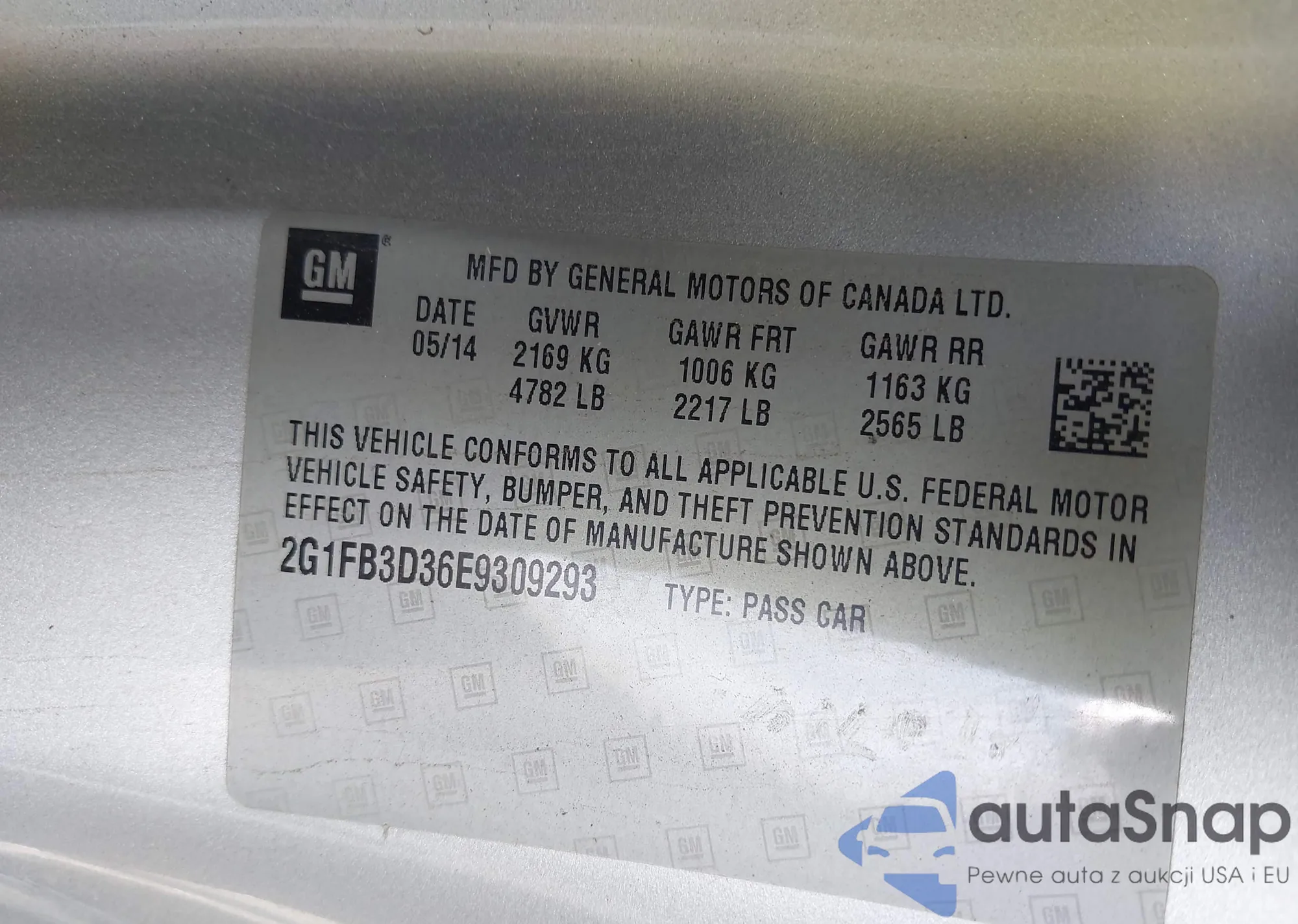 • VIN 2G1FB3D36E9309293