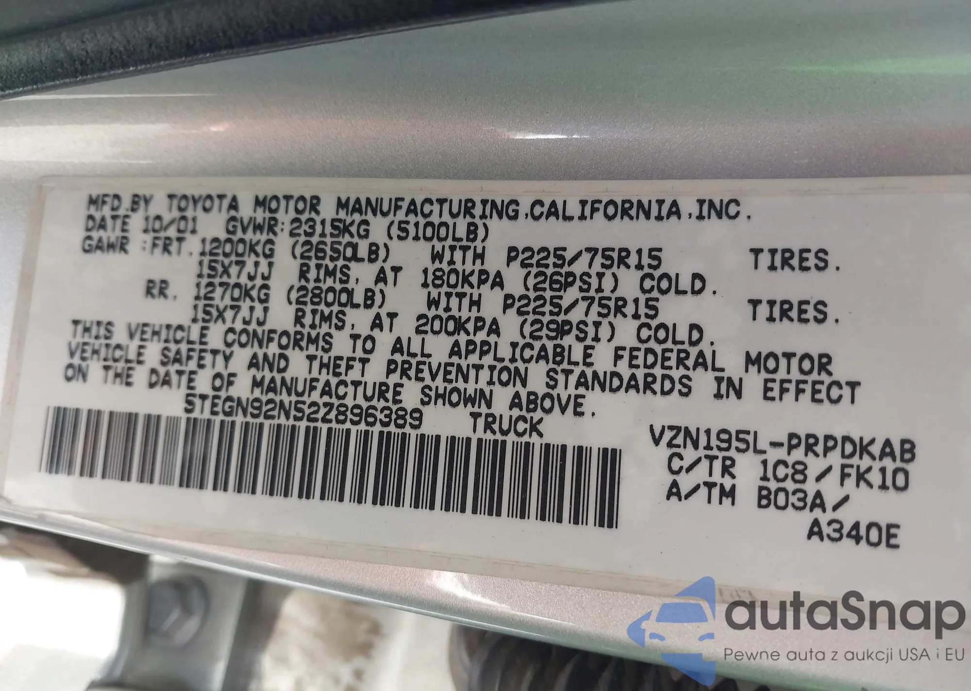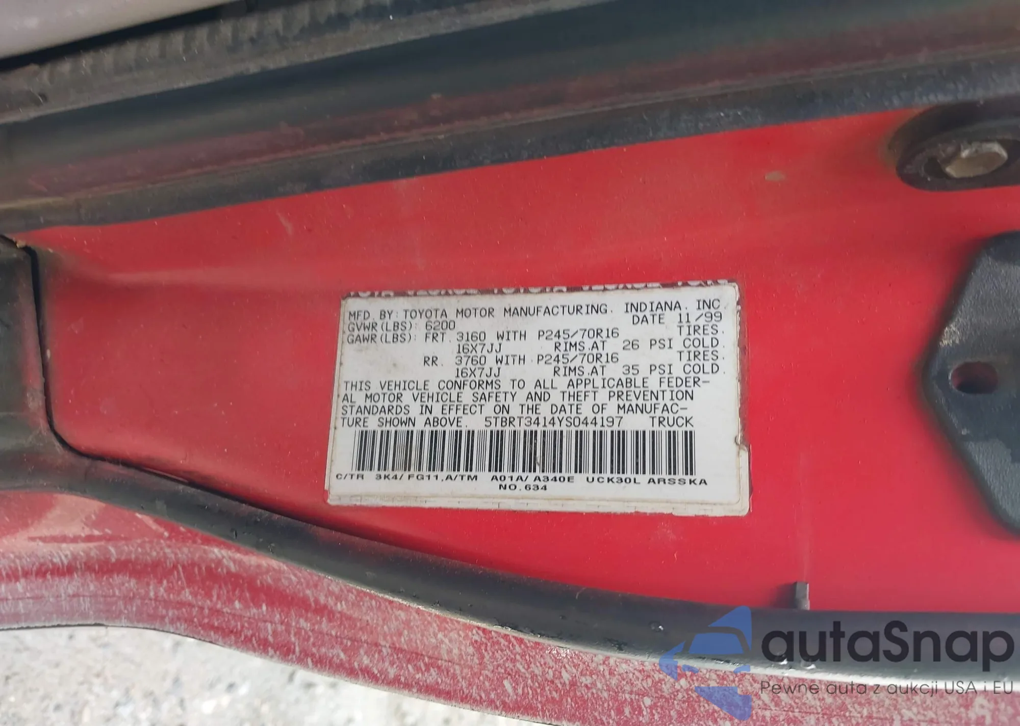 • VIN 5TBRT3414YS044197