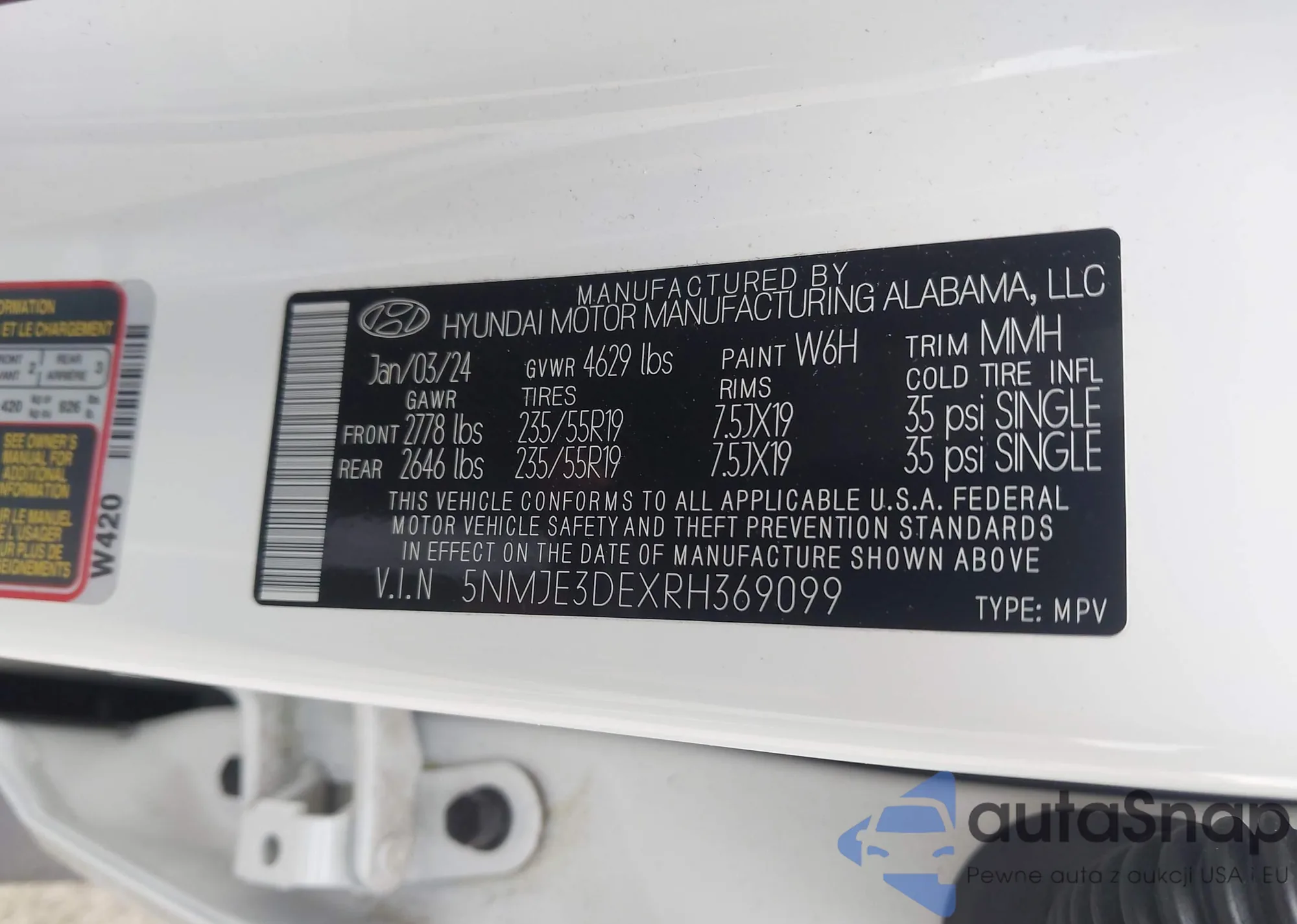 • VIN 5NMJE3DEXRH369099