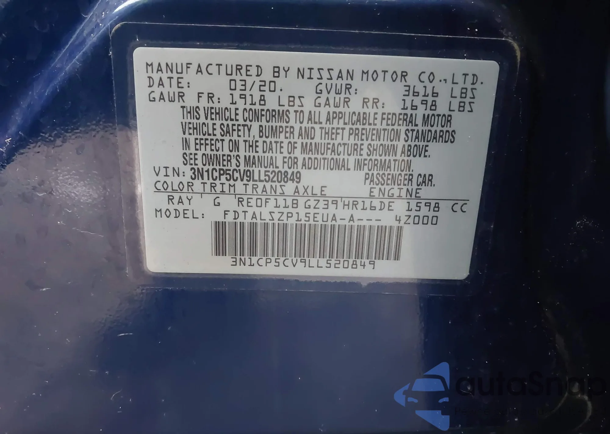 • VIN 3N1CP5CV9LL520849