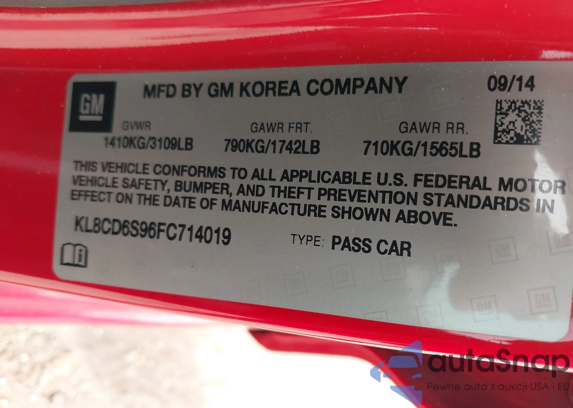 • VIN KL8CD6S96FC714019